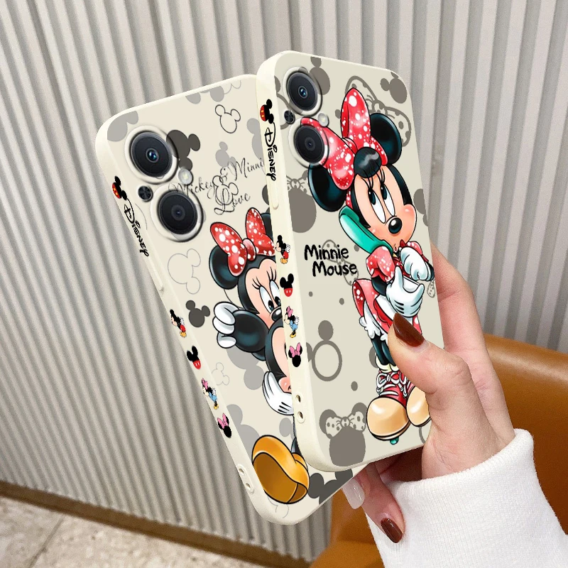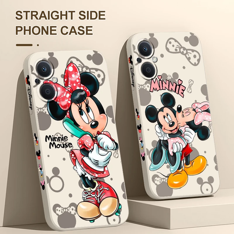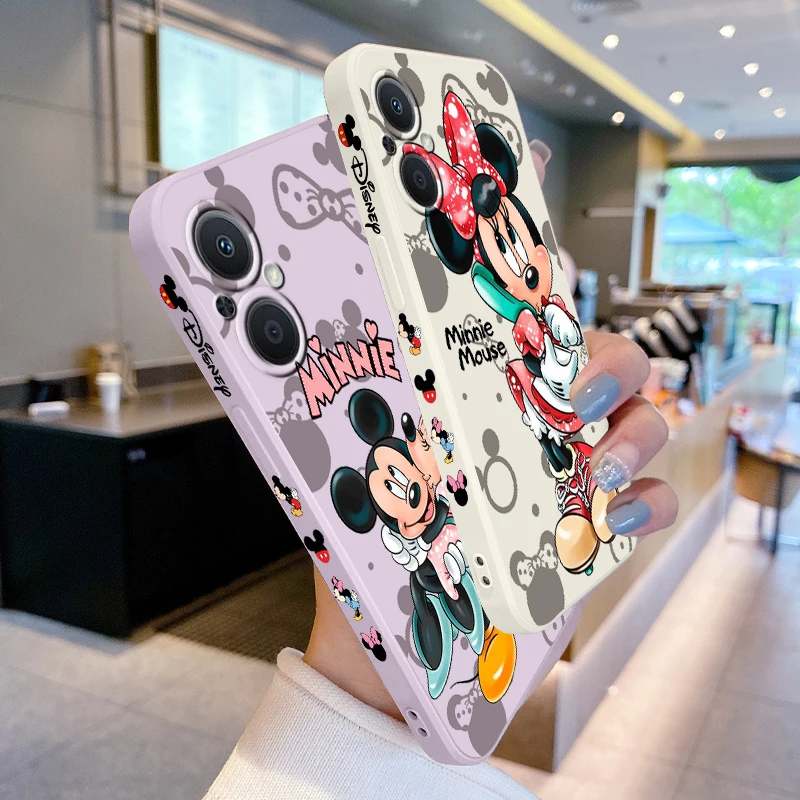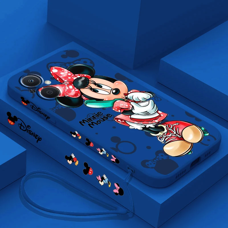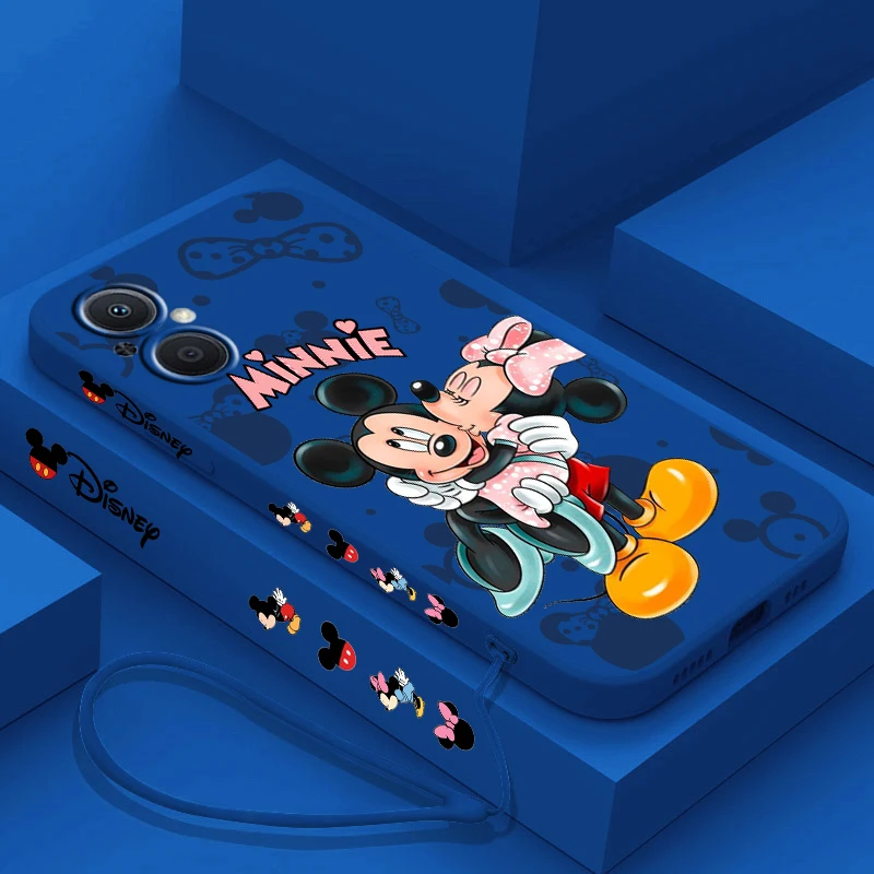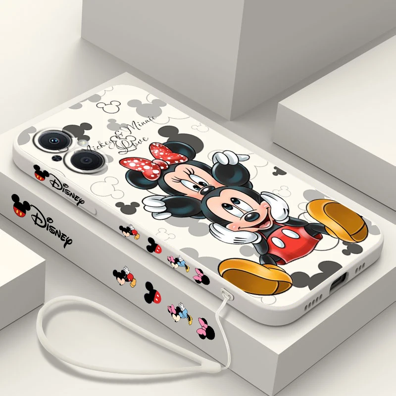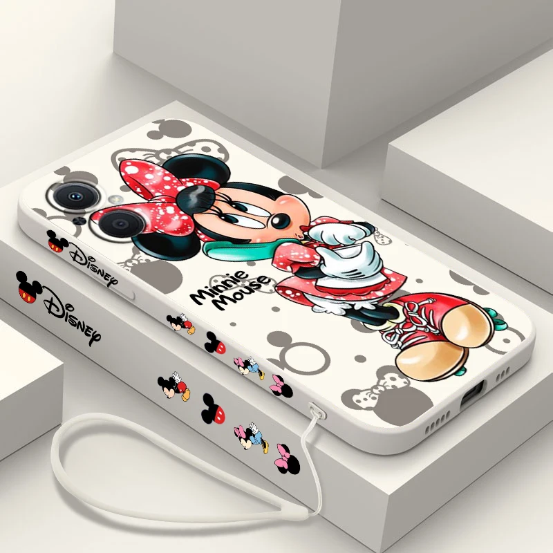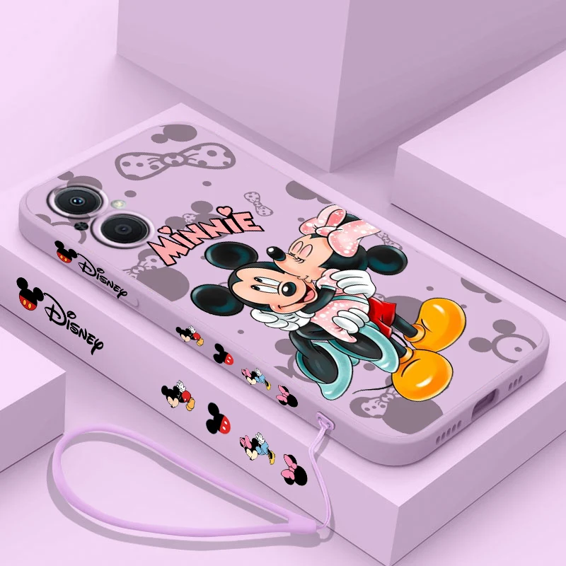 Comprar Bonita Minnie Mickey Mouse para OPPO Find X5 X3 X2 Lite Pro Neo A5 A53 A94 4G 5G, funda suave para teléfono con cuerda izquierda líquida