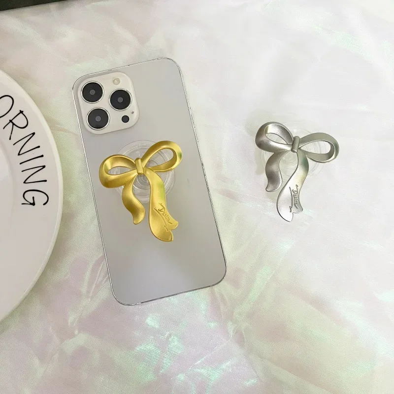 Comprar Bonita pegatina trasera de carcasa de teléfono con lazo, soporte de teléfono plegable transparente estilo coreano Ins para iPhone, Samsung, Xiaomi, soporte montado en la parte trasera