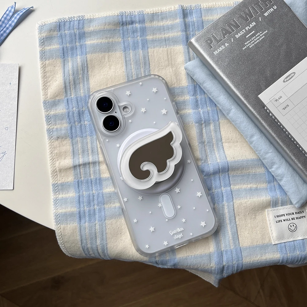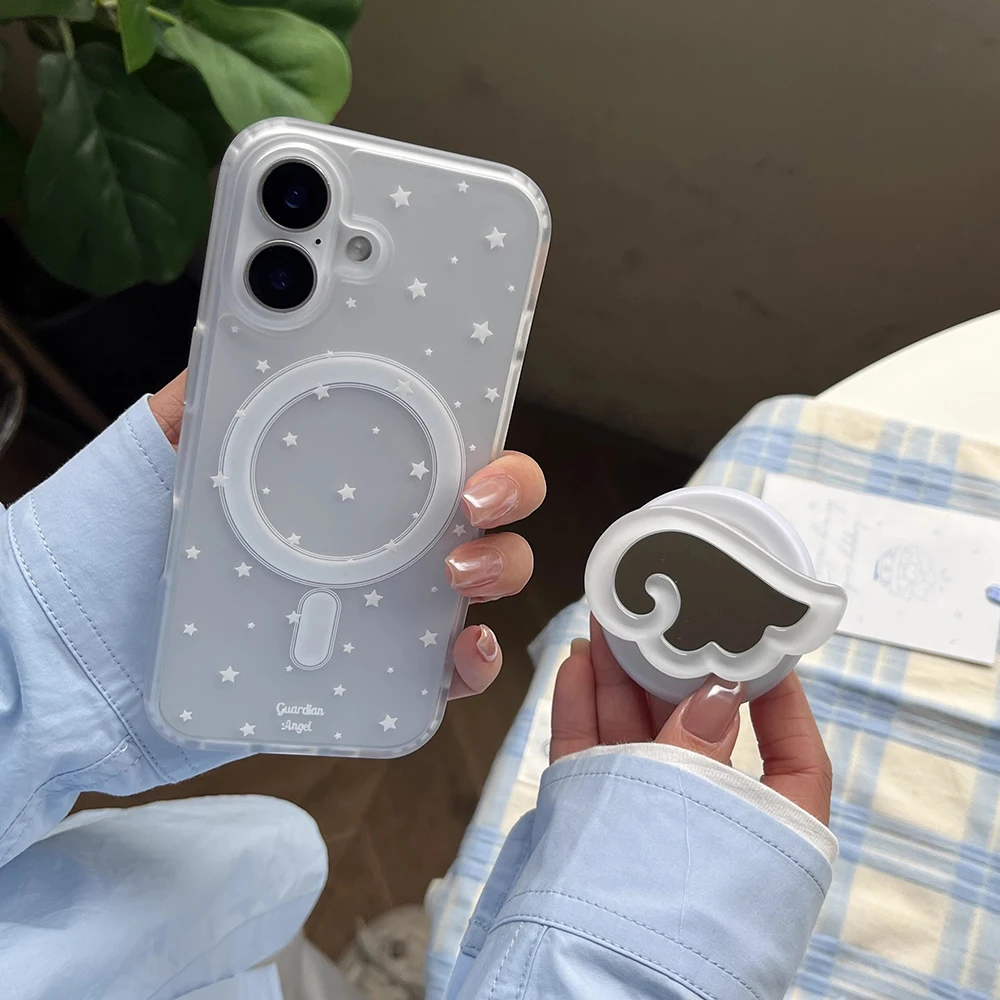 Bonitas alas de Ángel soporte magnético Tok fundas de teléfono para iPhone 16 15 14 13 Pro Max Plus encantador espejo suave Compatible con funda trasera Magsafe