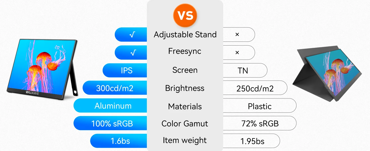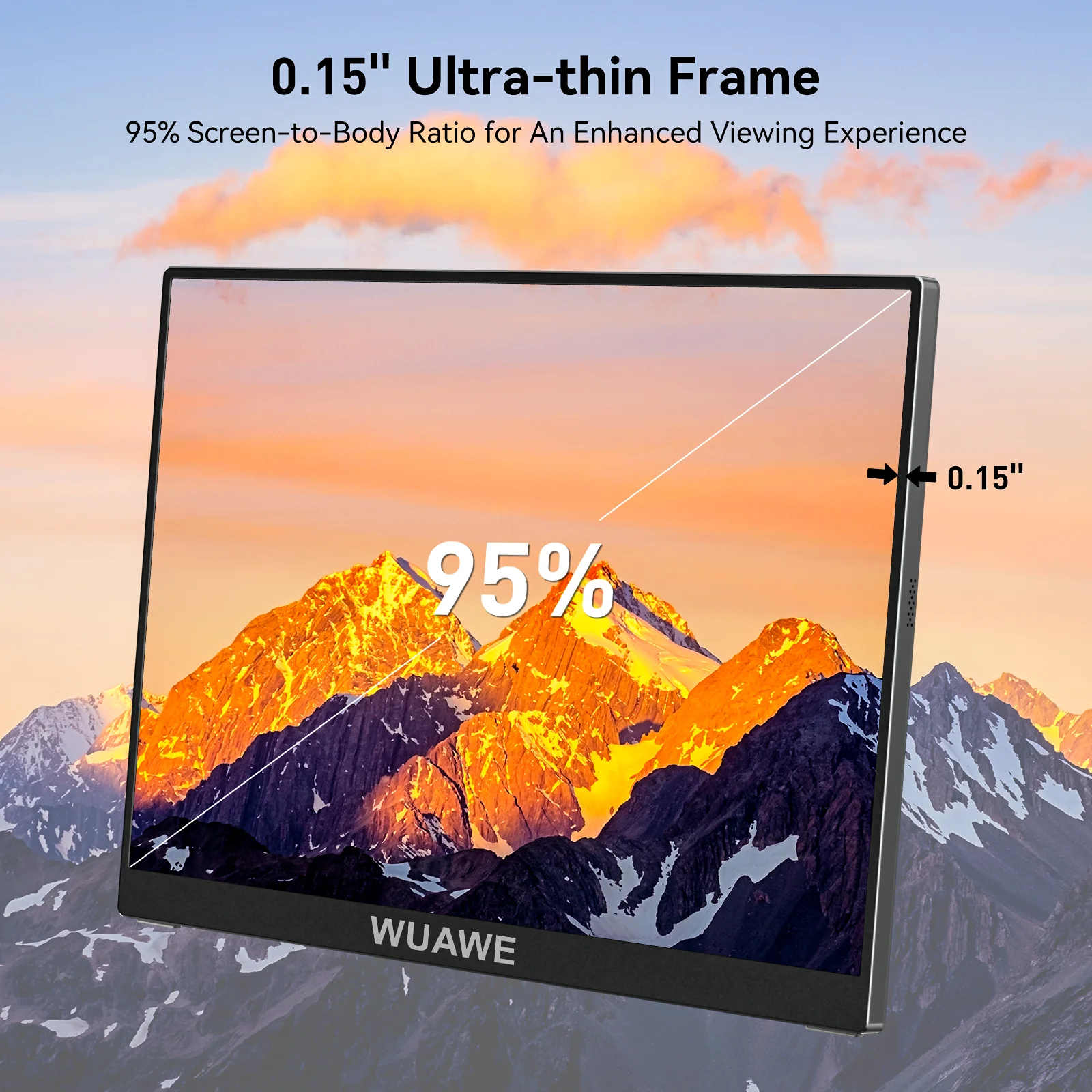 [ PANTALLA PORTÁTIL ULTRA DELGADA ]: El monitor portátil WUAWE USB C cuenta con un 0.Perfil ultradelgado de 3 pulgadas (1.7 libras), es fácil de deslizar en su bolso, le permite llevarlo a todas partes, ideal para una configuración simple de monitores duales mientras viaja o para ampliar la pantalla de su teléfono para películas o juegos.No se necesita controlador y está equipado con entradas de audio de 3,5 mm y 2 altavoces estéreo integrados para mejorar la experiencia de entretenimiento.
