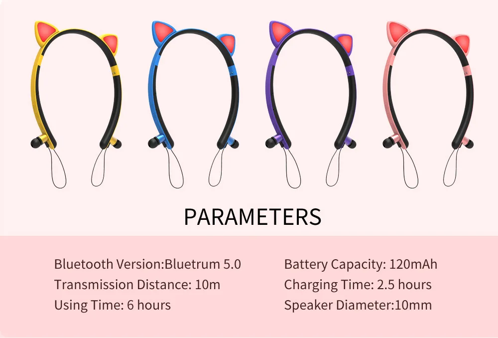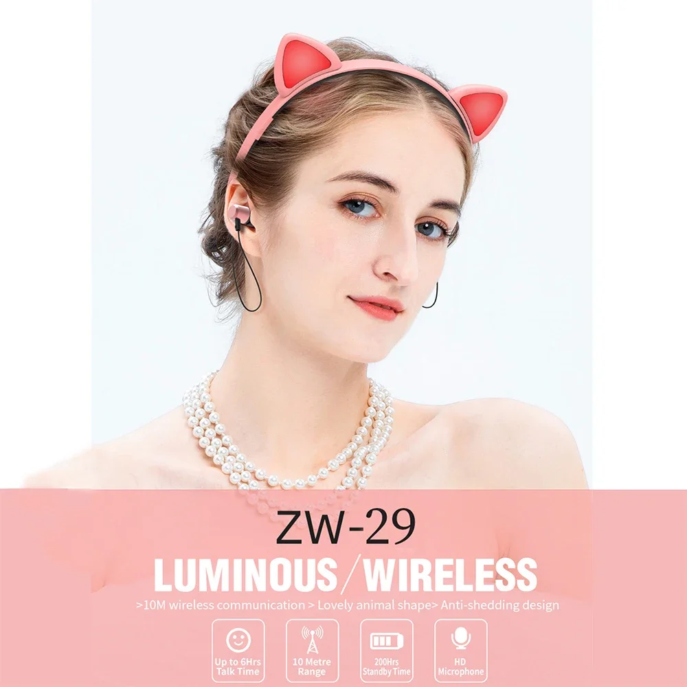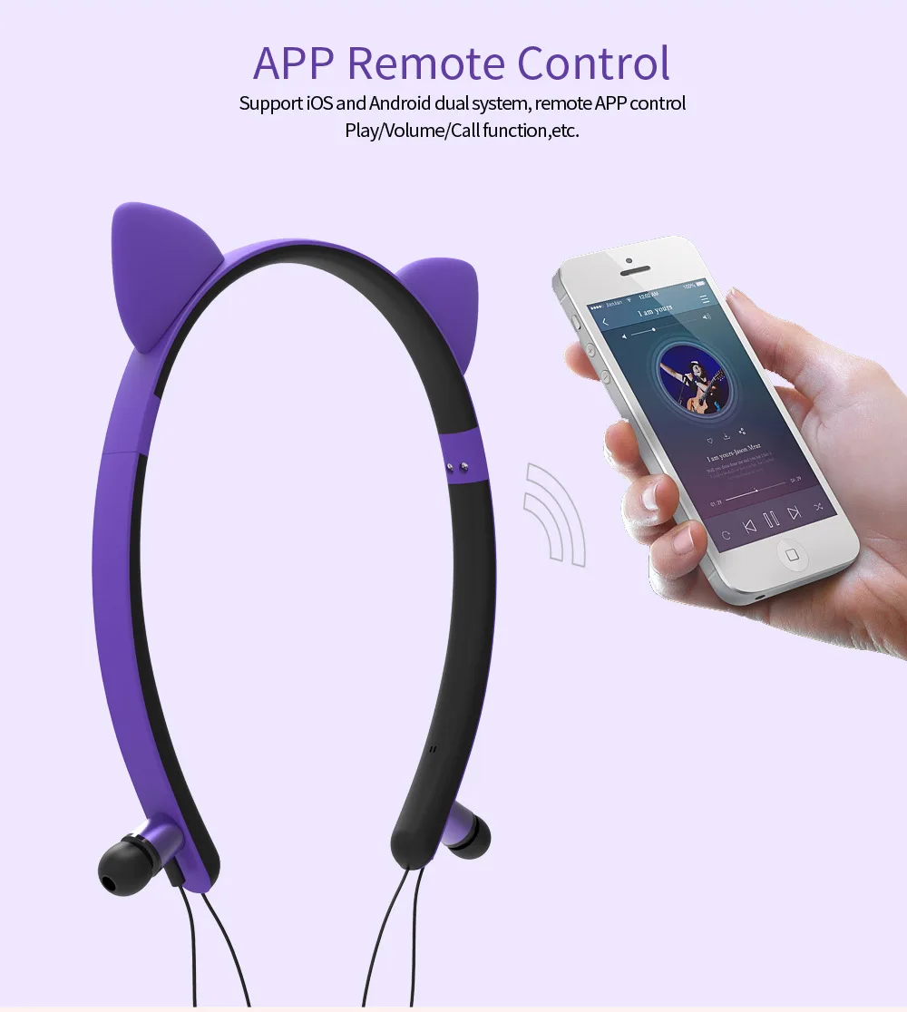 Comprar Bonitos auriculares inalámbricos con forma de oreja de gato, cascos brillantes con Bluetooth para colgar en el cuello, auriculares deportivos de música Hifi con micrófono para teléfono Pad