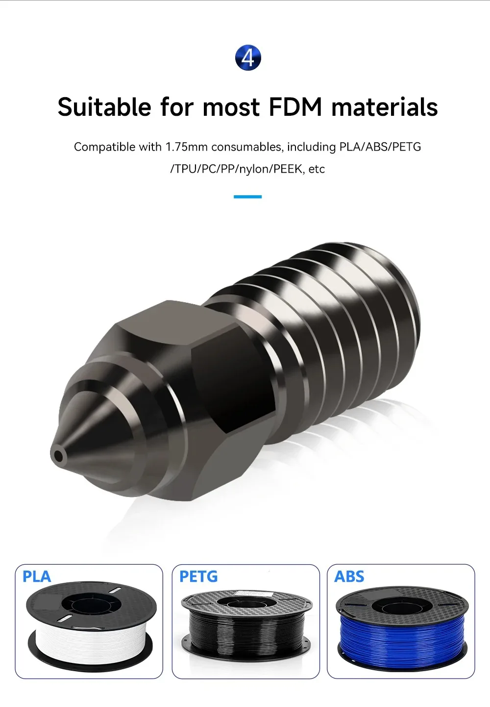 Boquilla de acero endurecido Spider para Ender-3 V3 SE, piezas de impresora 3D, boquilla de 1,75mm para extrusora Ender 7 Ender 5 S1 Spider Hotend