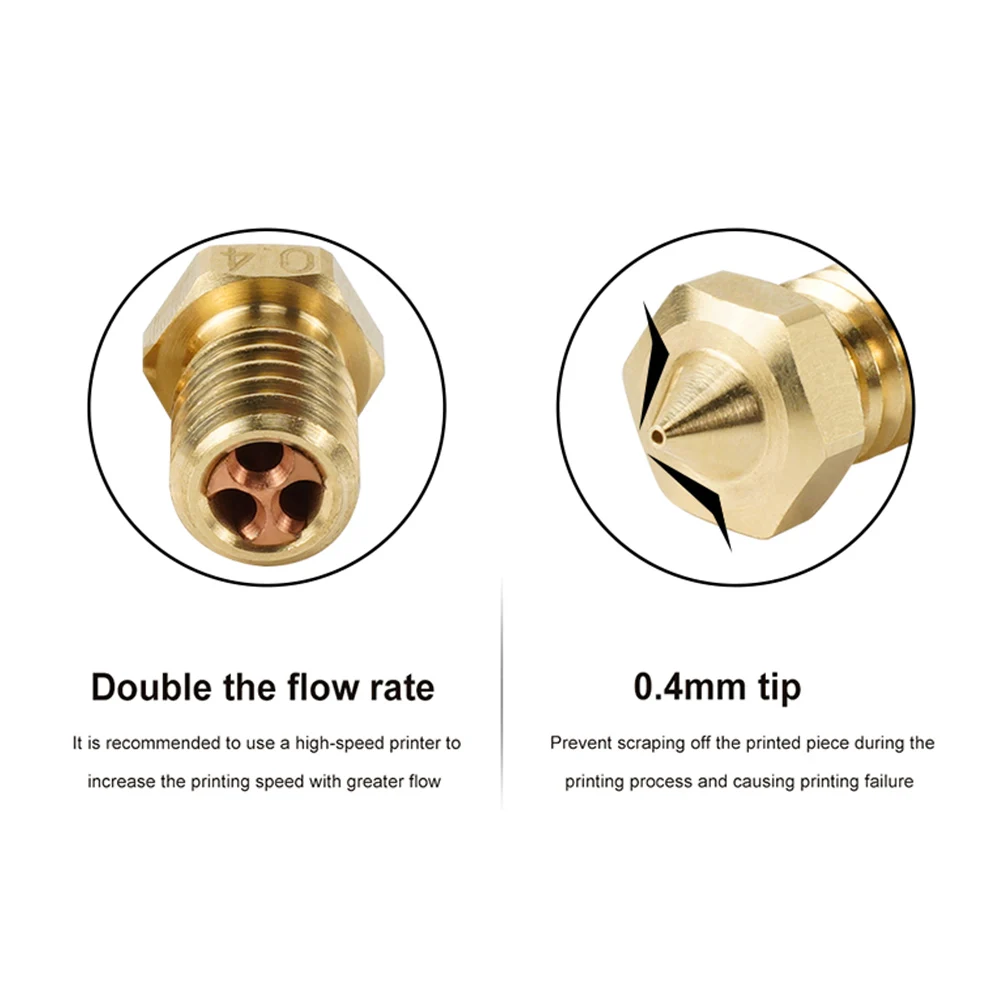 5. Material de latón y cobre:Esta boquilla de impresora está hecha de latón y cobre. Por lo tanto, su dureza es muy alta y resistente al desgaste. Es una pieza de impresora 3D duradera.