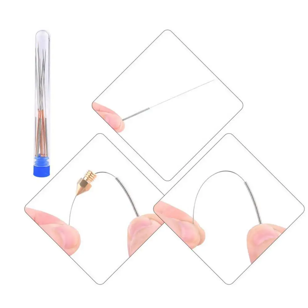 3. Uso conveniente: mantenga su impresora 3D en buenas condiciones sin esfuerzo.Nuestra boquilla cuenta con 10 agujas de limpieza de acero inoxidable que son flexibles y resistentes.No es necesario desmontarlo, simplemente use las agujas para eliminar obstrucciones duras en la boquilla del extremo caliente del extrusor.Disfrute de mejoras significativas en la eficiencia de la producción con facilidad