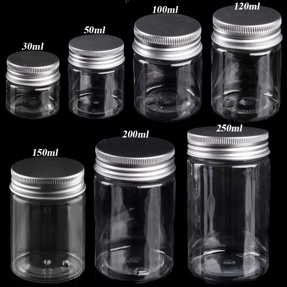 100% nuevo y de alta calidad Moda y diseño único Te hace más atractivo, encantador, moderno y elegante Es un buen regalo para tu amante, familia, amigo y compañero de trabajo Gorra Material: material del tarro de aluminio: plástico Capacidad: 30/50/100/120/150/200/250ML (aprox.) Color: transparente Cantidad: 1 pieza El paquete incluye: botella vacía x 1