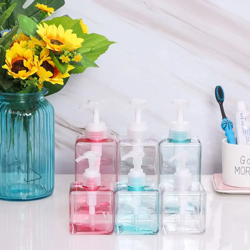 Comprar Botella cuadrada transparente de 650ml, botella de jabón líquido para Mousse batida, puntos de embotellado, champú, loción, Gel de Ducha