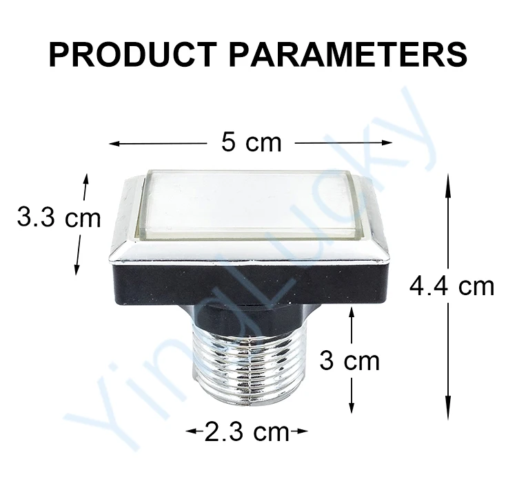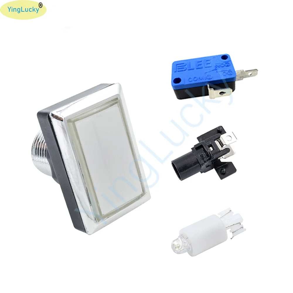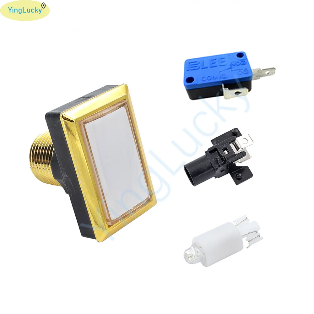 Comprar Botón LED Rectangular de 50x33mm con microinterruptor, bombilla LED de 12V, cromado dorado para armario de Arcade, 1 unidad