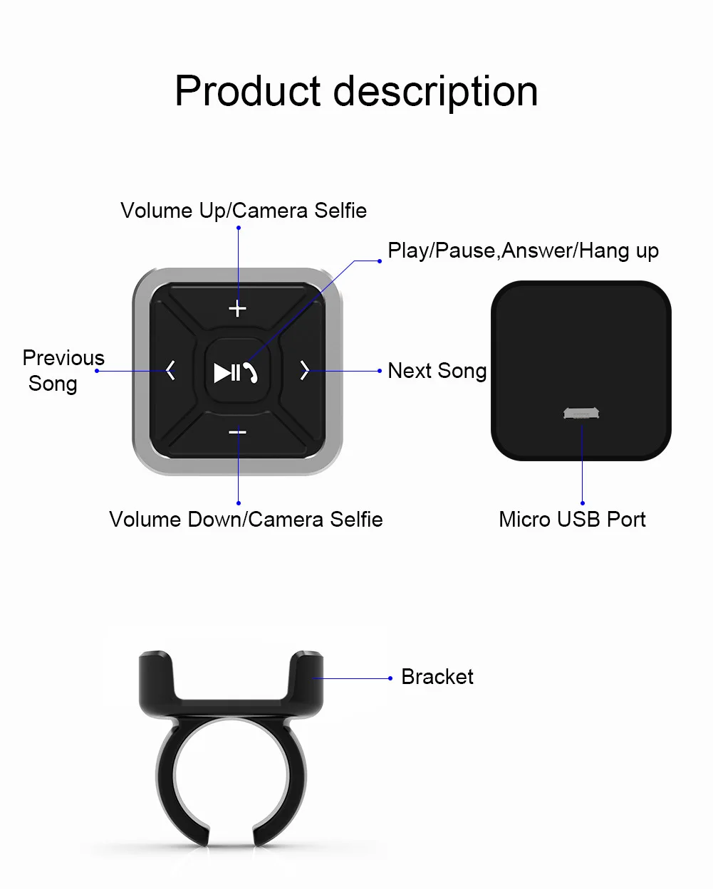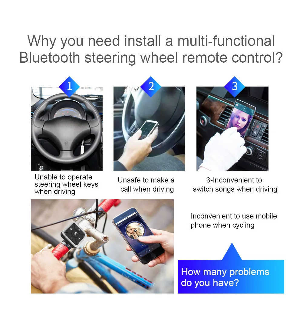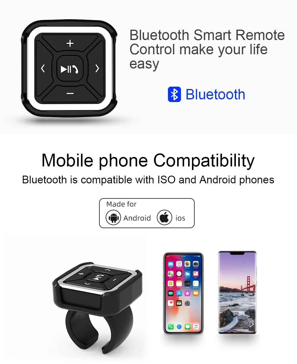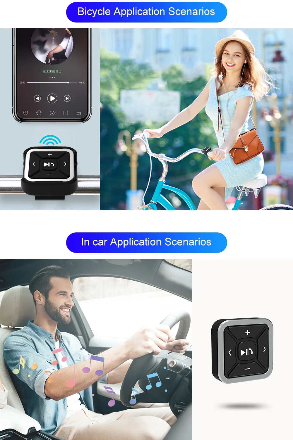 Comprar Botón Multimedia Inalámbrico Bluetooth para Android IOS, reproductor de música MP3, interruptor de volante de coche, Control remoto, accesorios Automotrices