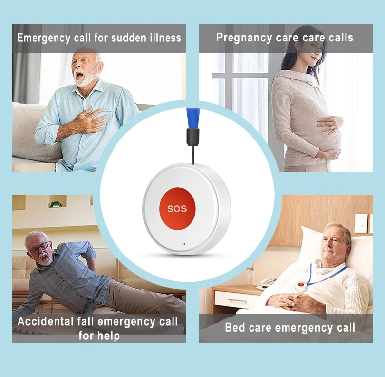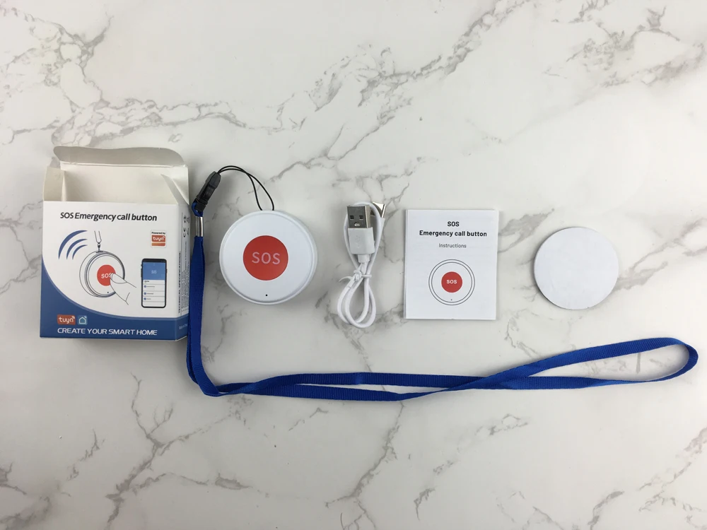 Comprar Botón de pánico de emergencia WiFi SOS, aplicación Tuya Smart Life, Color blanco, diseñado para pacientes mayores, batería recargable integrada