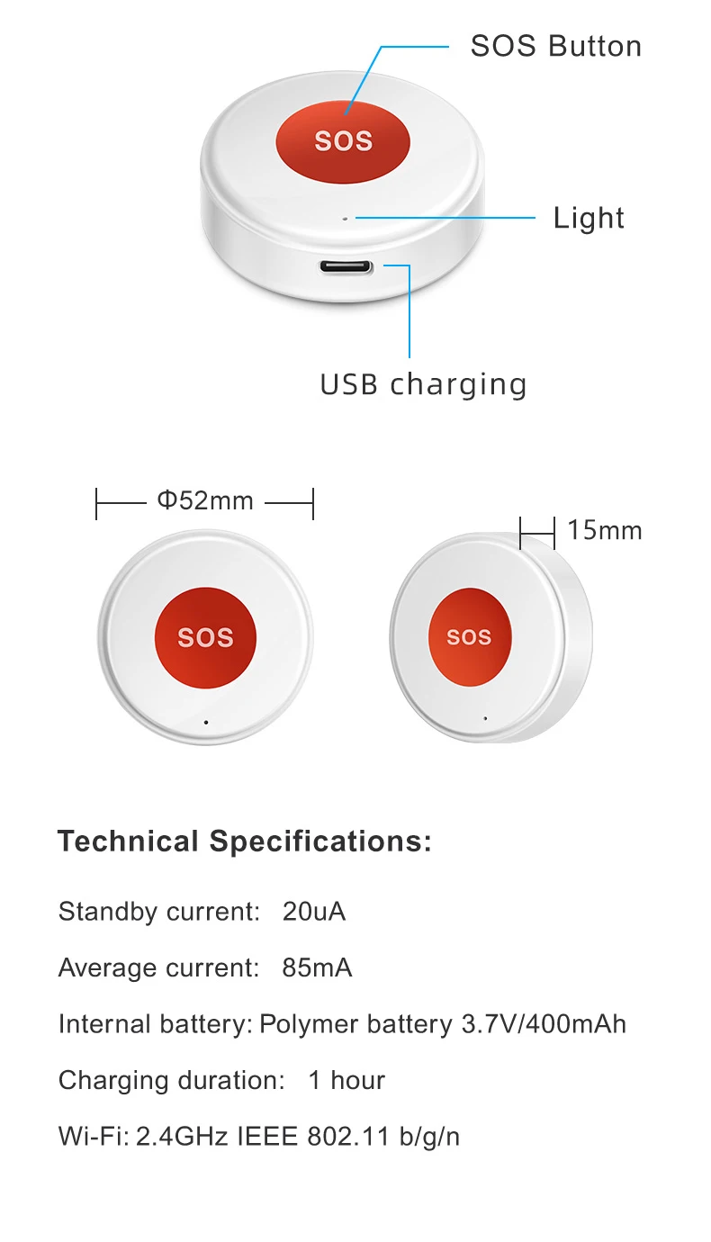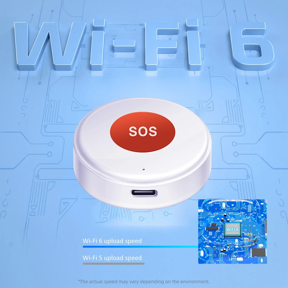 Botón de pánico de emergencia WiFi SOS, aplicación Tuya Smart Life, Color blanco diseñado para pacientes mayores, batería recargable integrada
