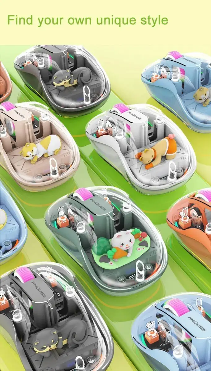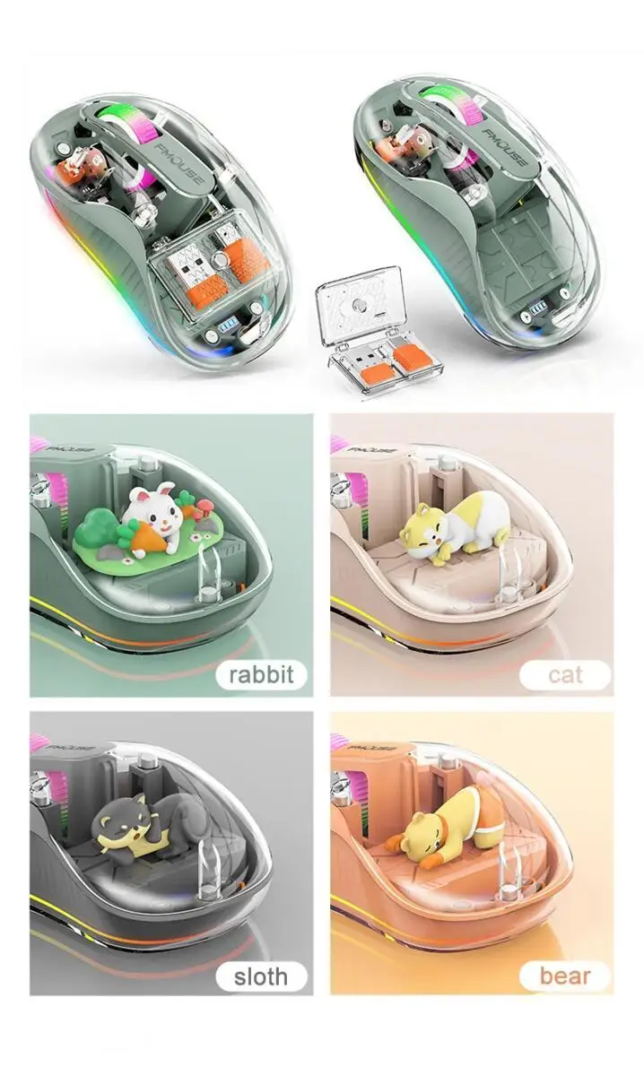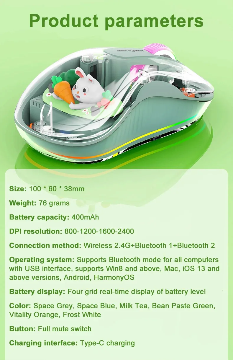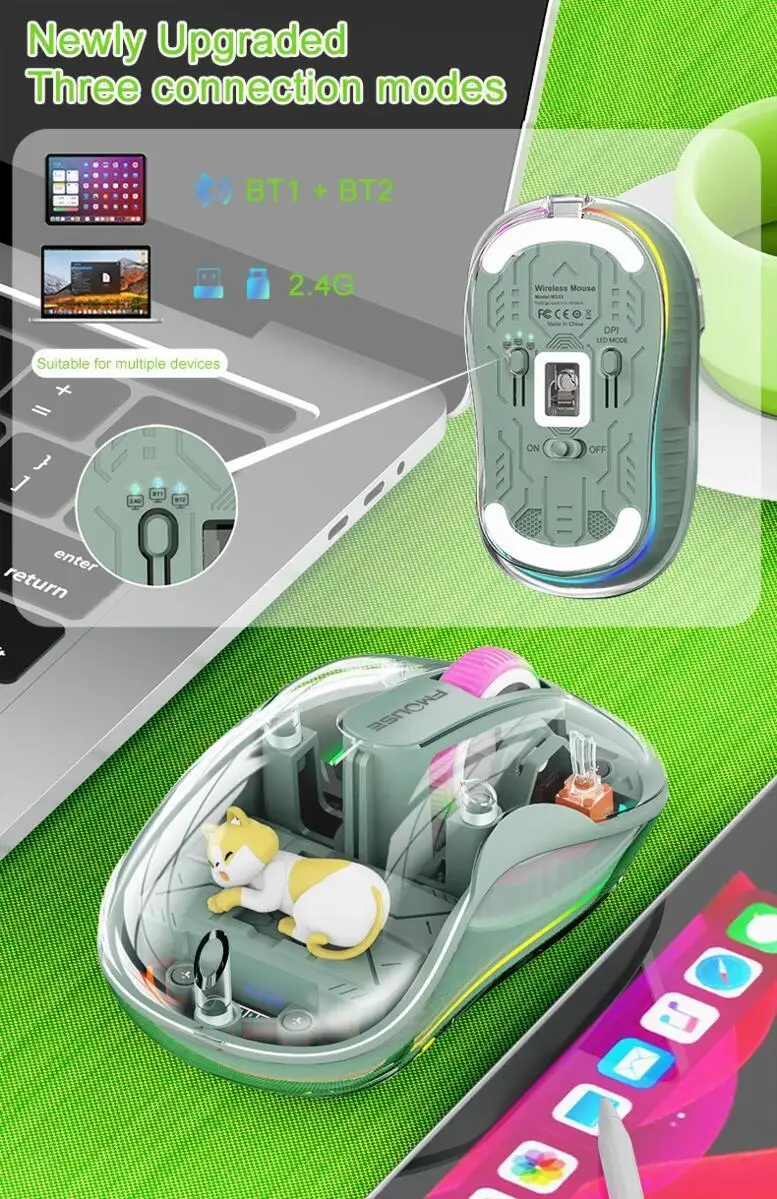 Bonita muñeca de dibujos animados, ratón inalámbrico Bluetooth de tres modos, ratón ergonómico recargable con pantalla de alimentación para PC, tableta, regalos para niños