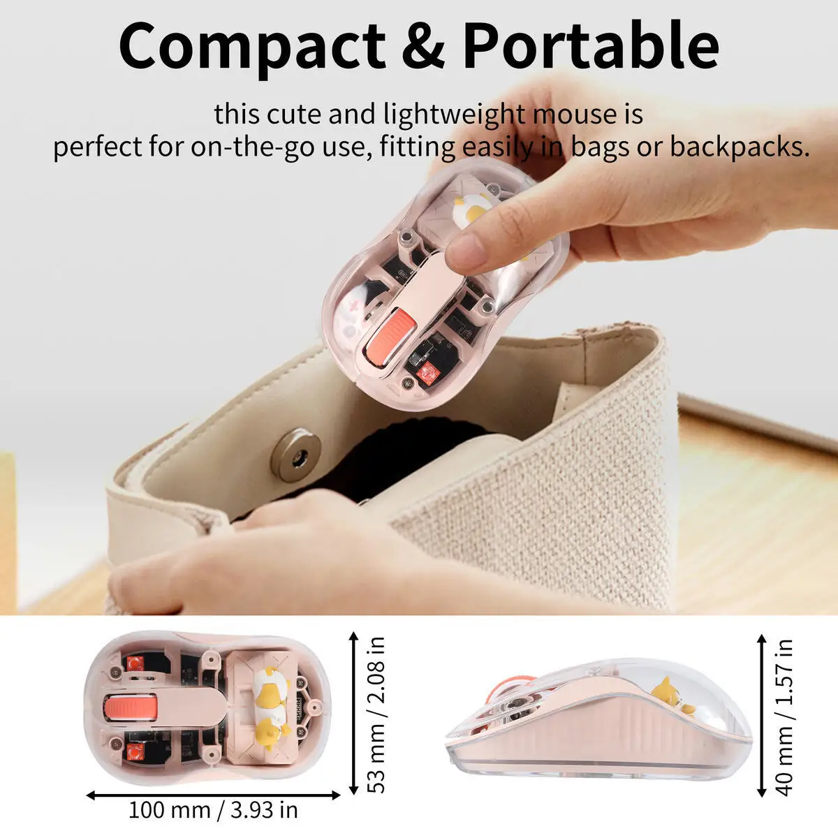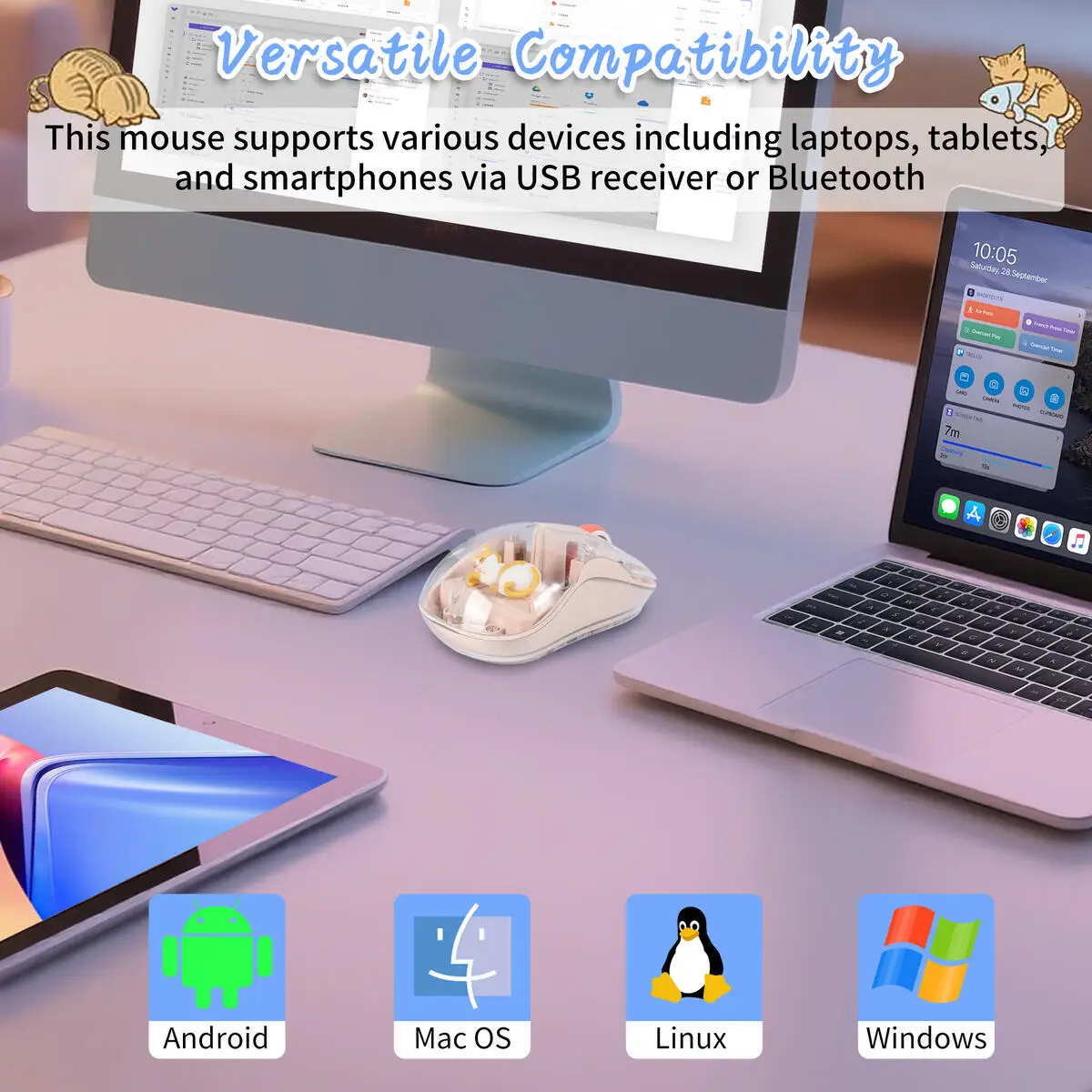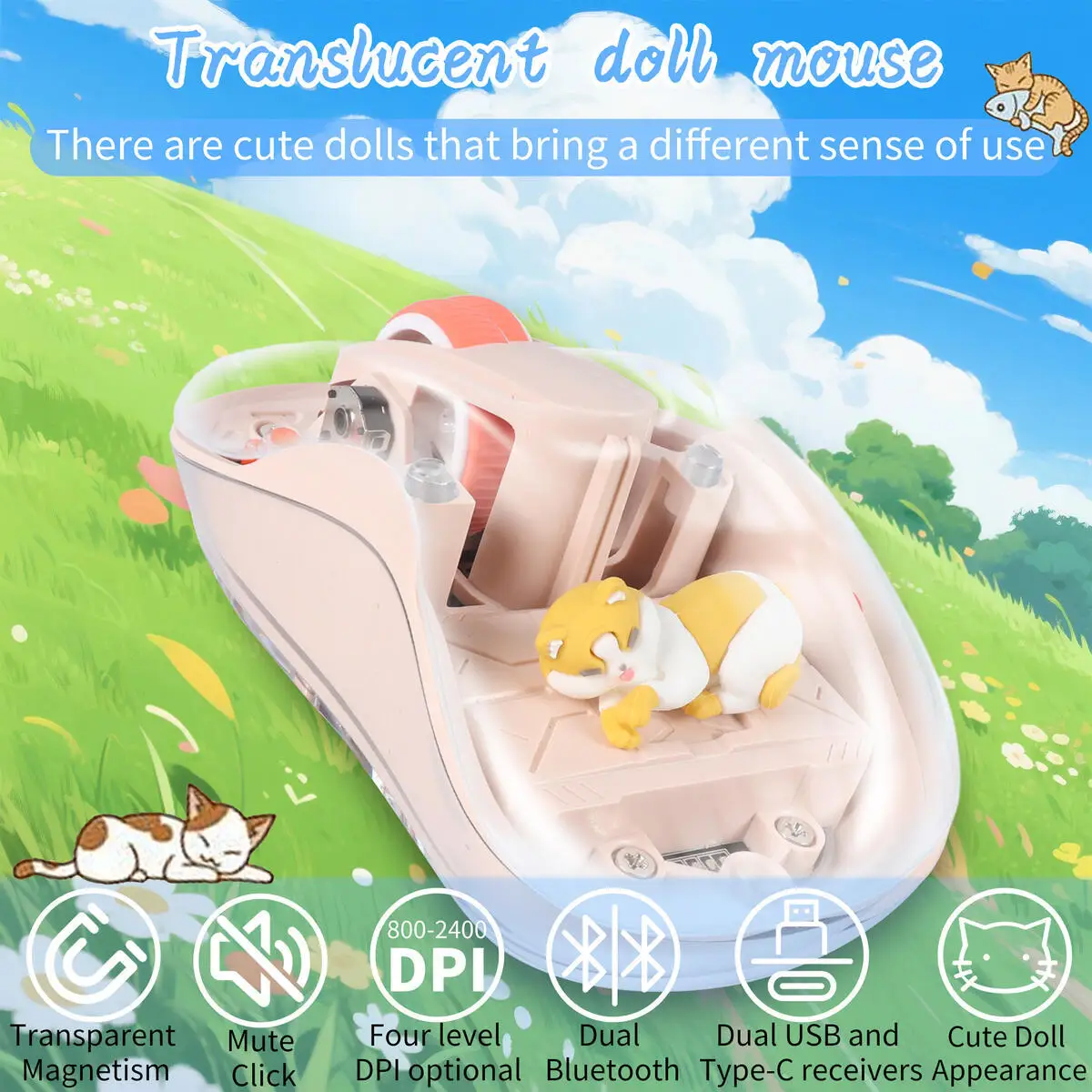 Bonita muñeca de dibujos animados, ratón inalámbrico Bluetooth de tres modos, ratón ergonómico recargable con pantalla de alimentación para PC, tableta, regalos para niños