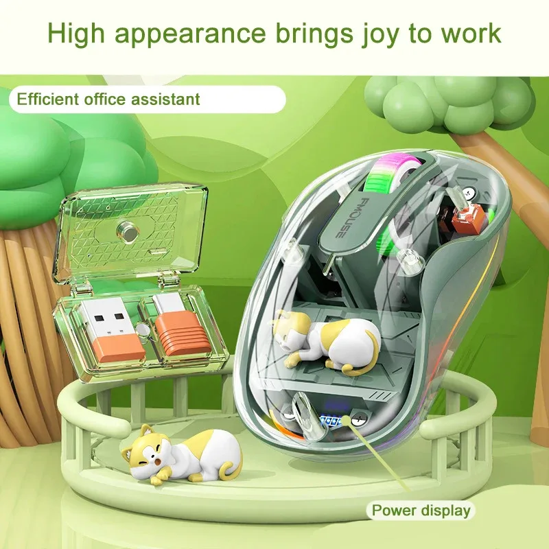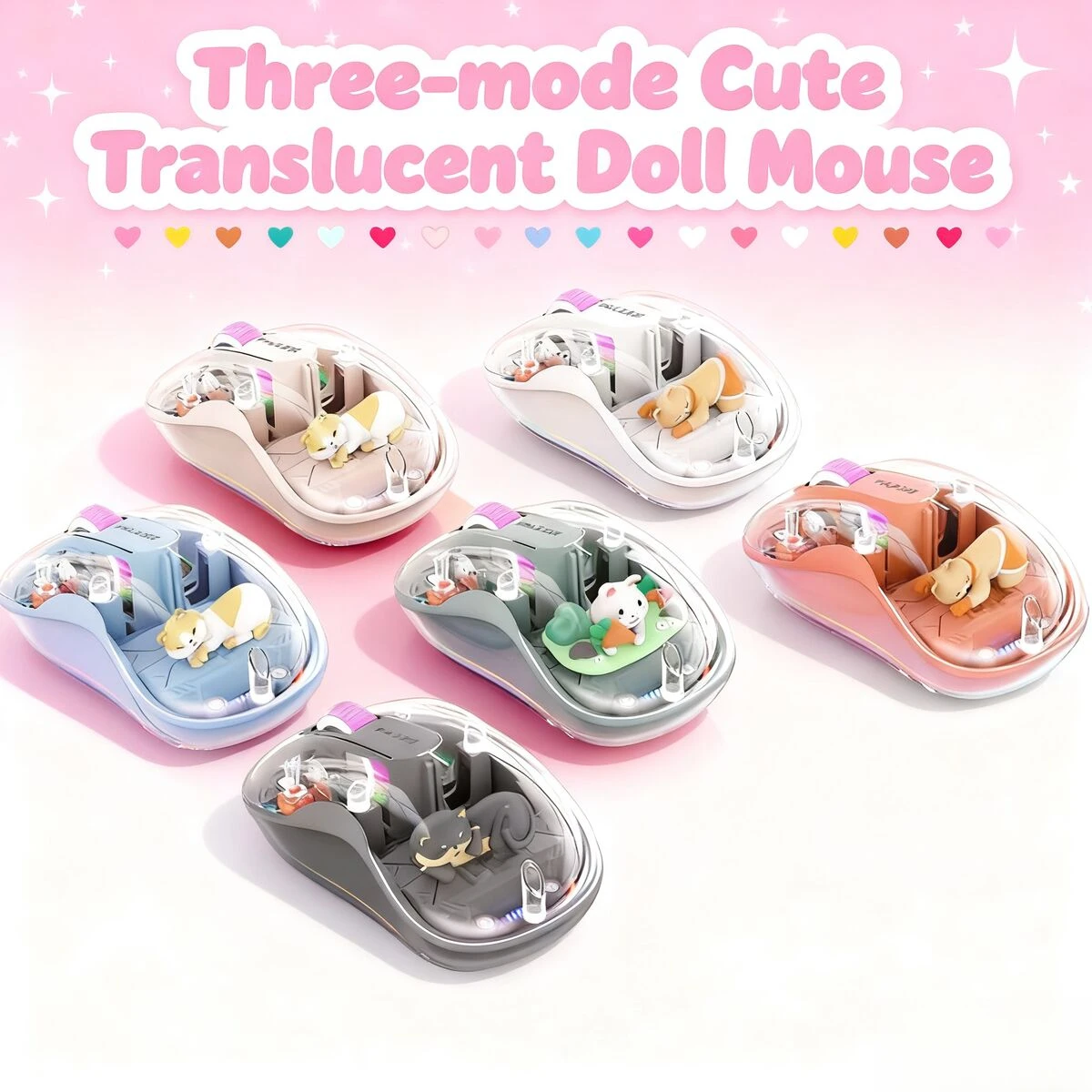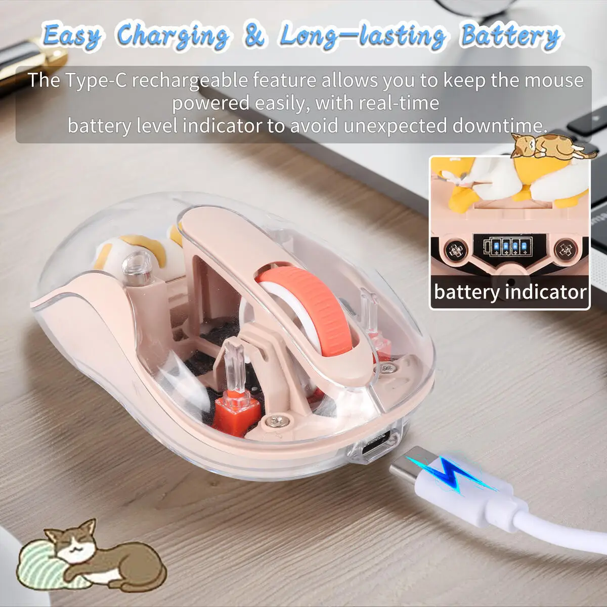 Bonita muñeca de dibujos animados, ratón inalámbrico Bluetooth de tres modos, ratón ergonómico recargable con pantalla de alimentación para PC, tableta, regalos para niños