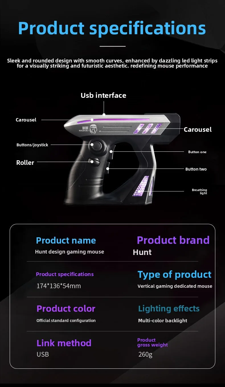 Nombre del producto: Ratón vertical para juegos en forma de pistola