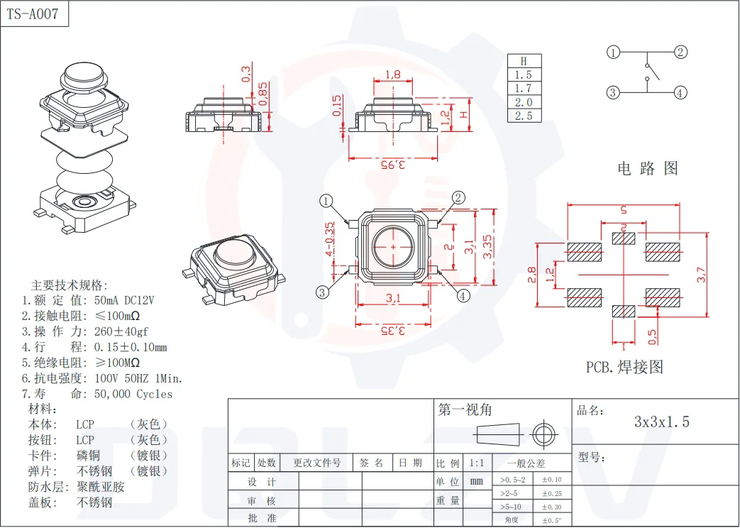 Comprar Botón Táctil momentáneo, 50/100 piezas, 3x3x1,5mm, 12V, interruptor de botón de Reinicio, 4 pines SMD