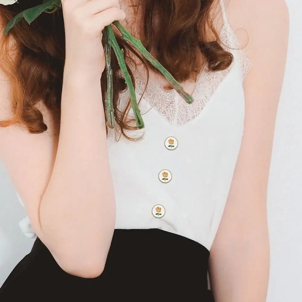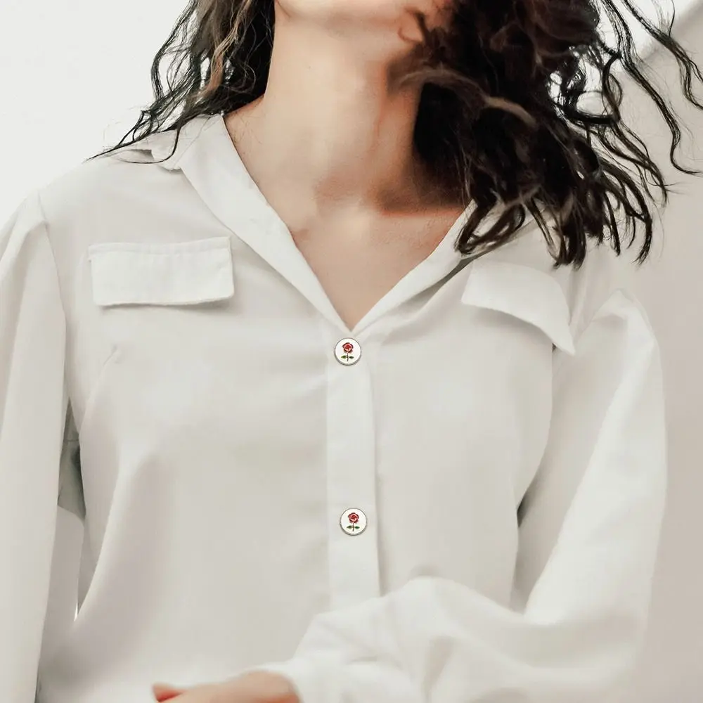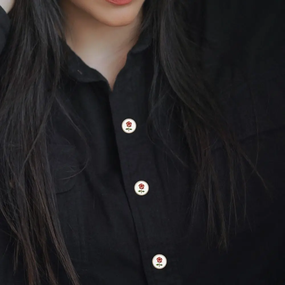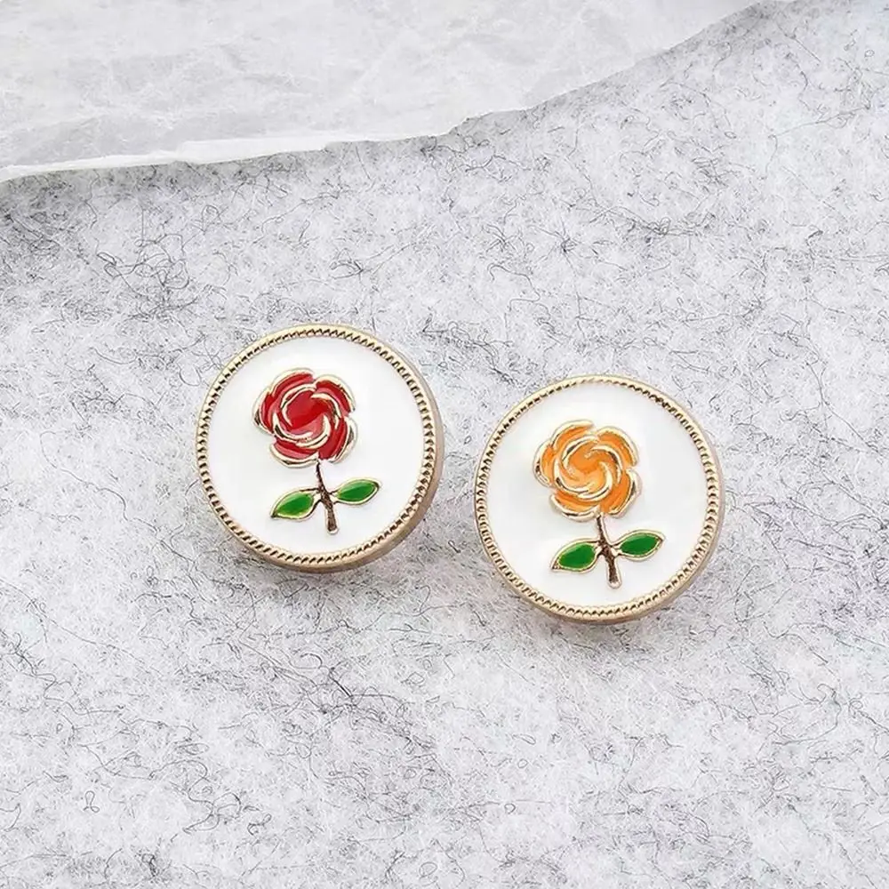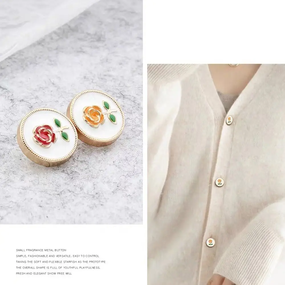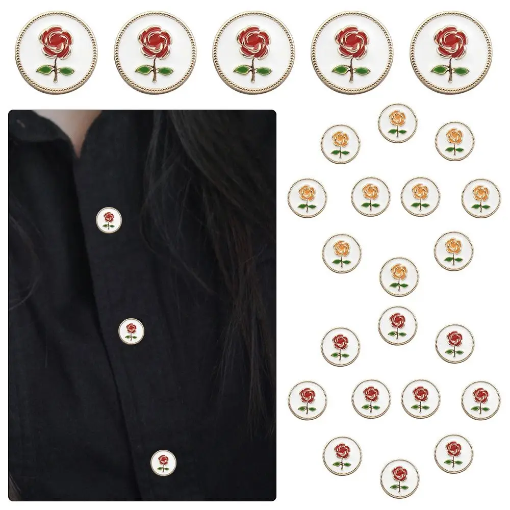 Comprar Botones de Metal de flores rosas para ropa, botones de decoración para traje, abrigo, suéter, botón de costura hecho a mano, 10 piezas
