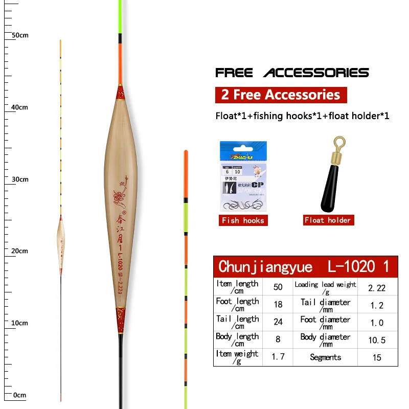 Comprar Boya de caña + 1 gancho de bolsa + 1 flotador, boya Vertical sensible, estable, Boya, cola dura, flotadores de pesca, aparejos de herramientas, 1 ud.
