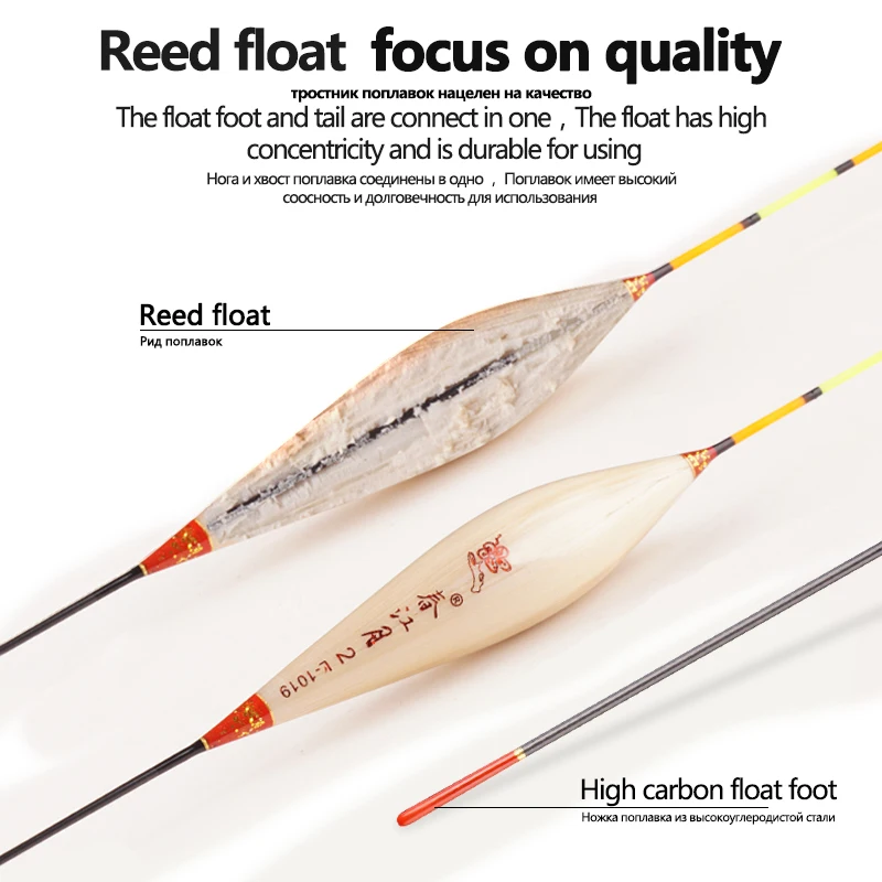 Características:1. El flotador está hecho de material de caña, que es liviano, de alta flotabilidad y alta sensibilidad durante la pesca.