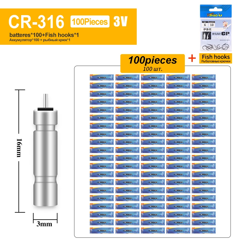 Comprar Boya eléctrica para pesca, aparejos luminosos para pescar, CR311 DLY, 100, 316, 322, 425, ZH CR425 + 1 bolsa de ganchos, accesorios de boya, 435 piezas
