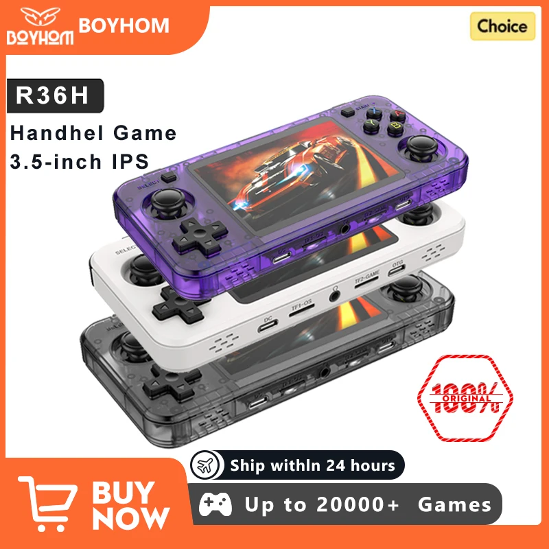 Comprar BOYHOM R36H juego Retro RK3326 sistema de código abierto pantalla IPS de 3,5 pulgadas consola de juegos portátil RG46H 64G 128G más de 15000 juegos
