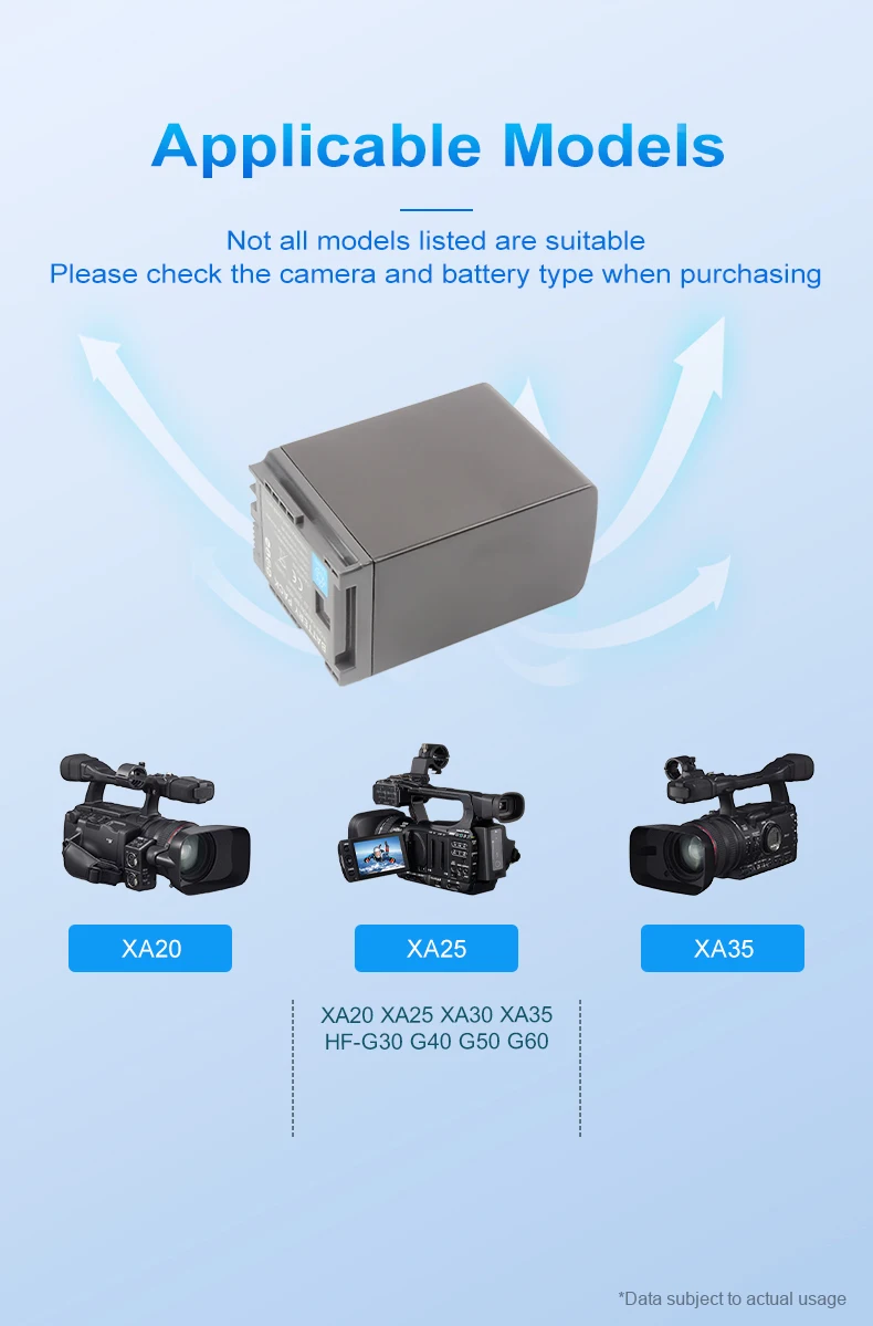 Cargador de batería BP828 para Canon XA15 XA11 XA20 XA25 XA30 XA35 HFG26 G30 G40 G50 G60 XF405 XF400 GX10
