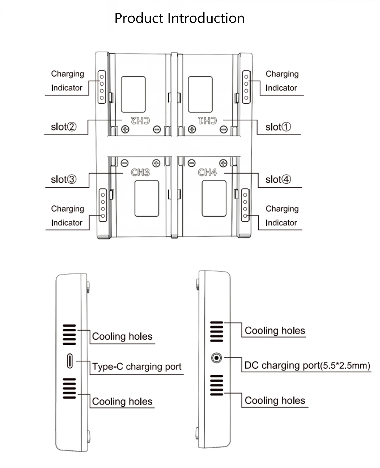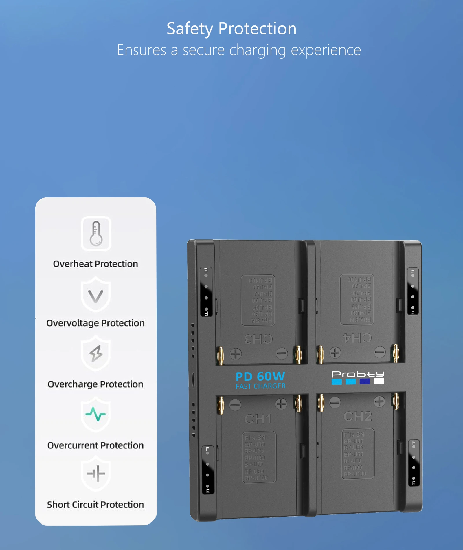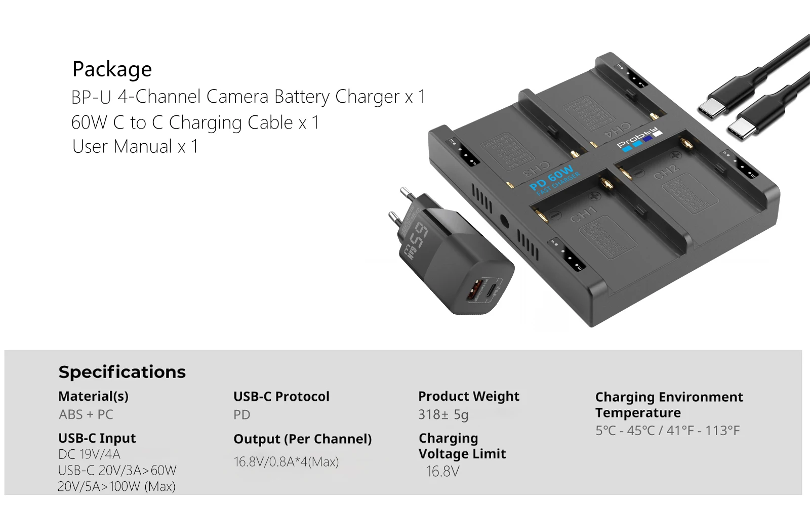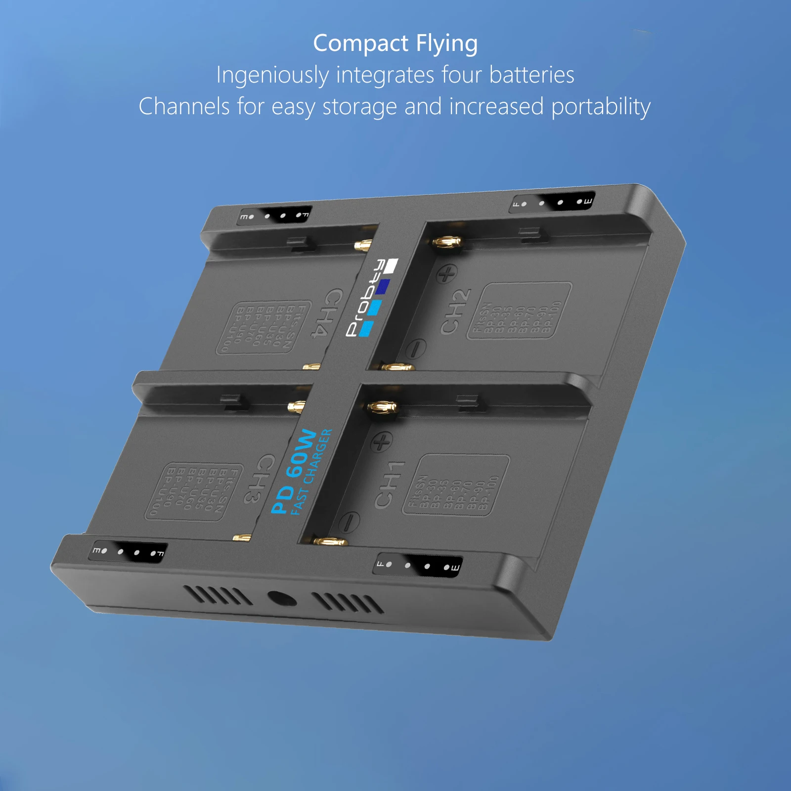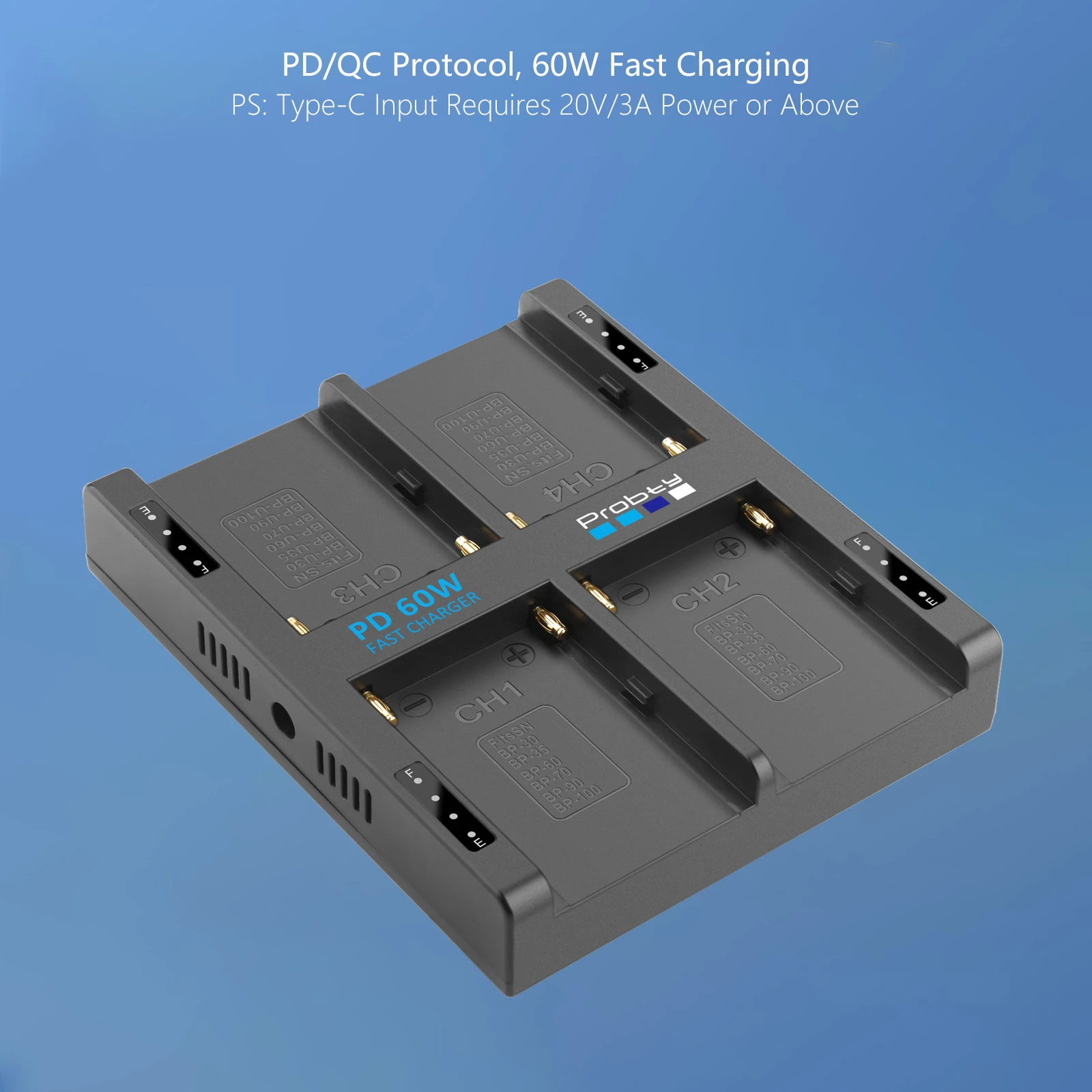 2. Carga rápida de alta eficiencia de 65 W: el cargador de batería para cámara de 4 canales Probty admite una impresión