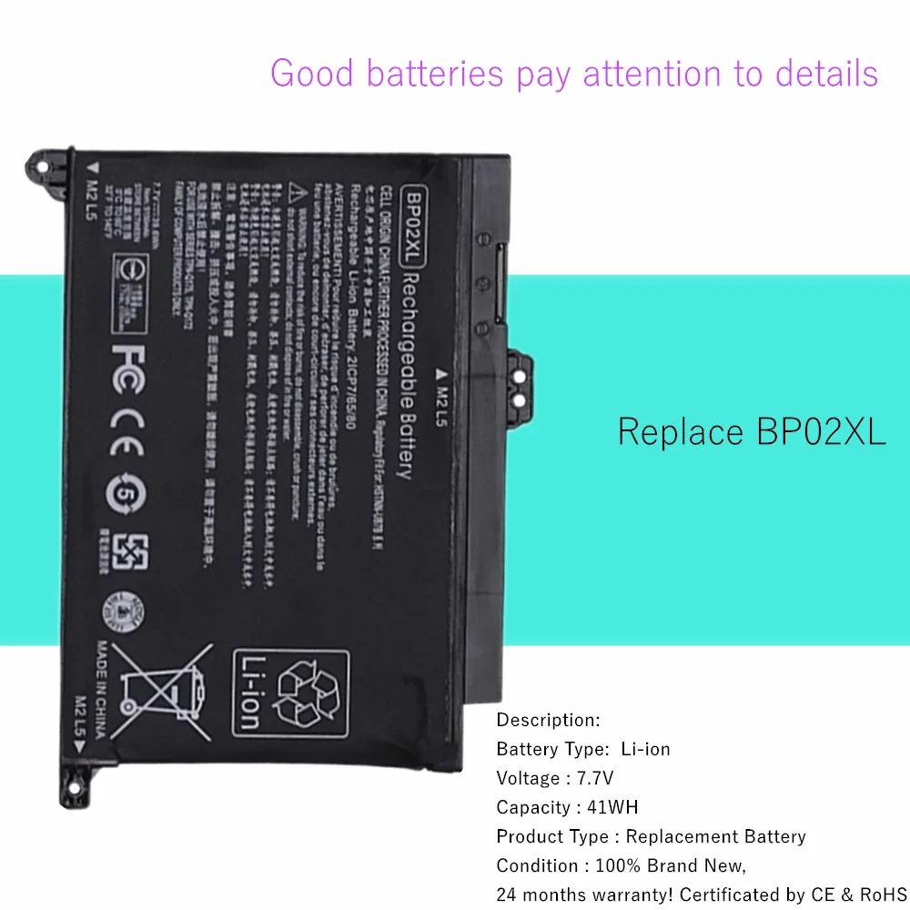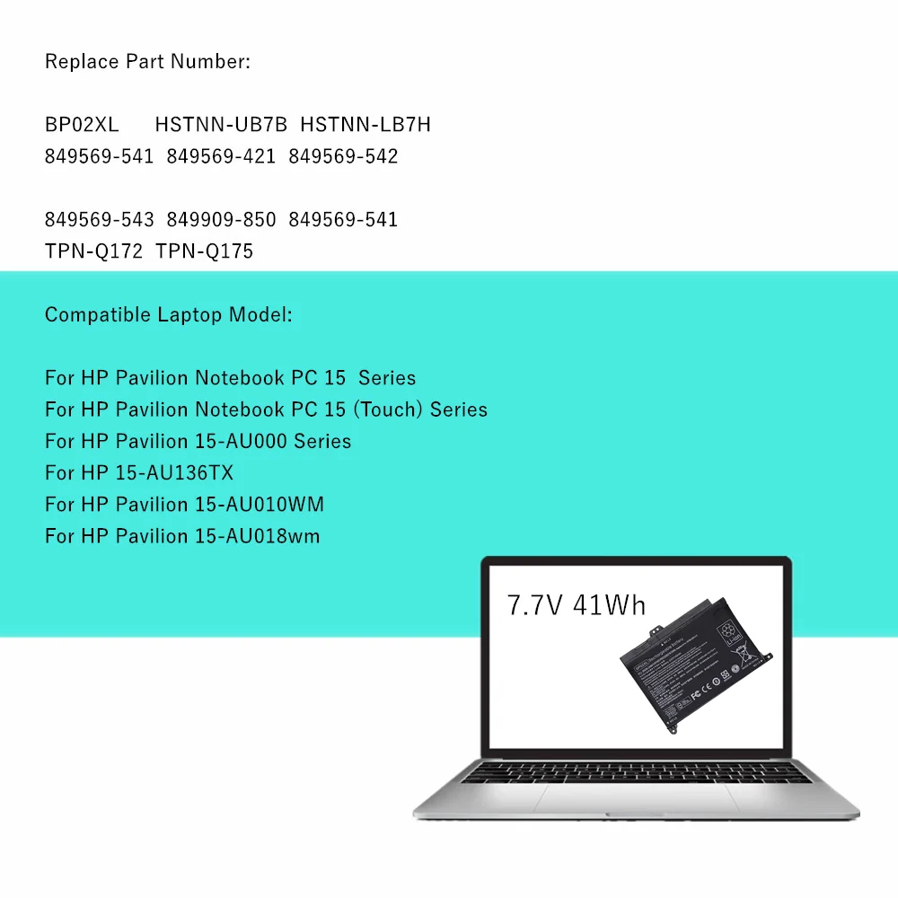 Comprar BP02XL batería del ordenador portátil para HP Pavilion Notebook PC 15-AU000 AU040TX AU136TX HSTNN-UB7B HSTNN-LB7H TPN-Q172 TPN-Q175 849569 -541