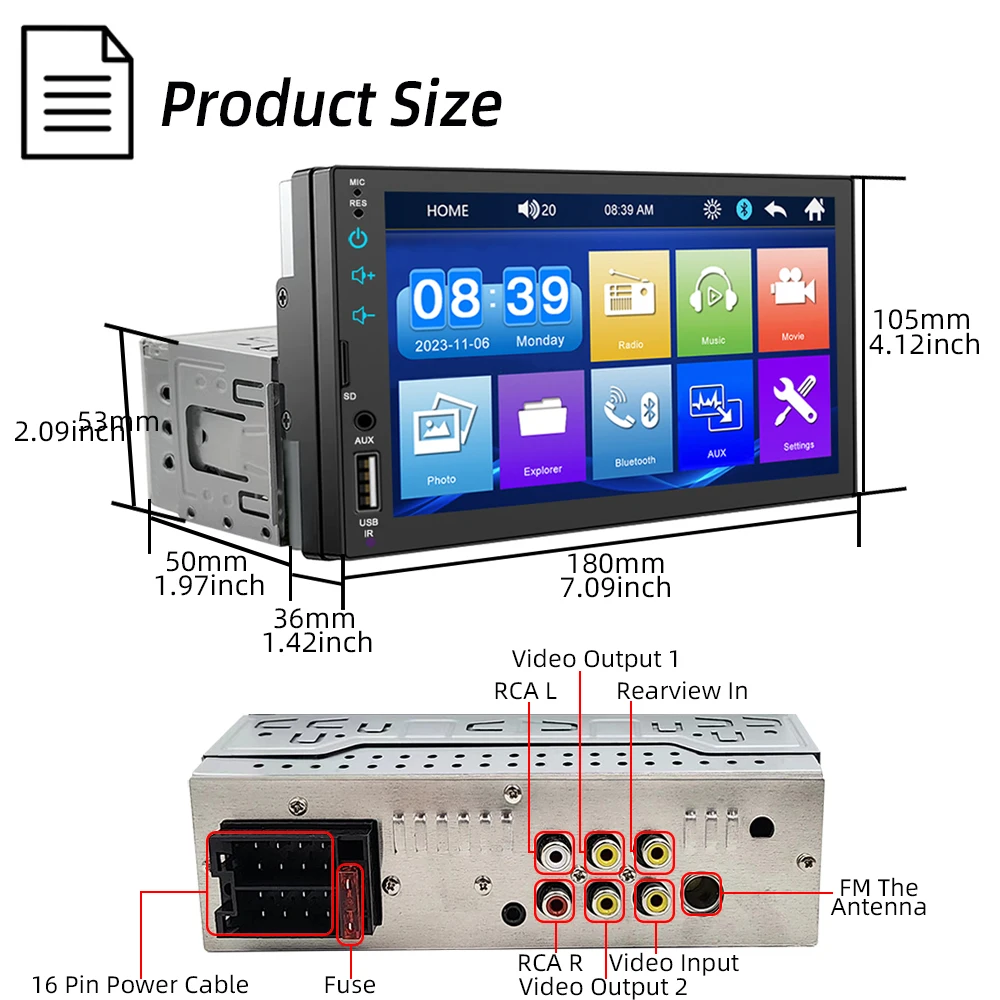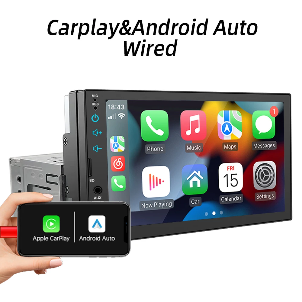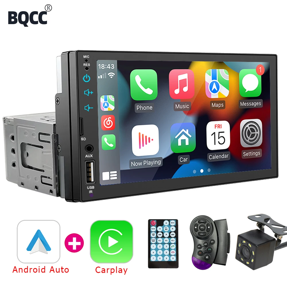 Comprar BQCC-reproductor Multimedia con pantalla táctil HD para coche, autorradio Universal con Android, 7 pulgadas, Carplay, 1 Din, FM, entrada auxiliar, Bluetooth, MirrorLink