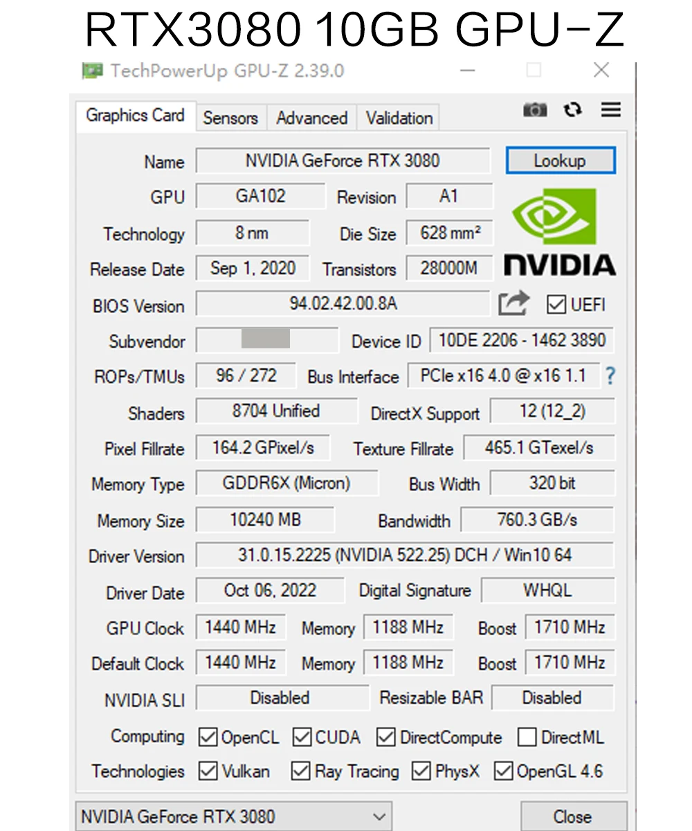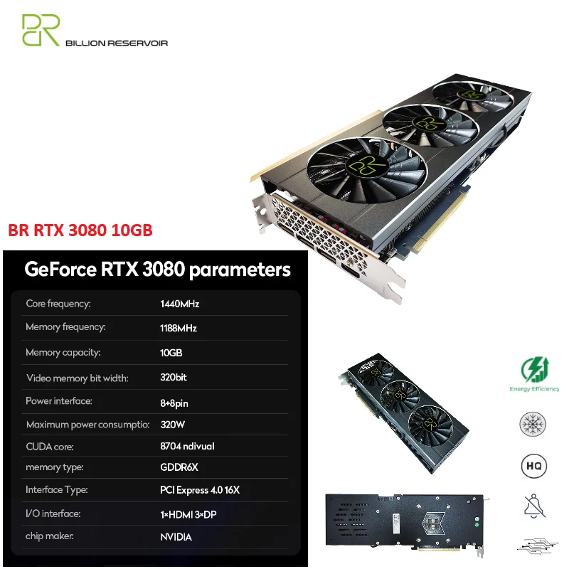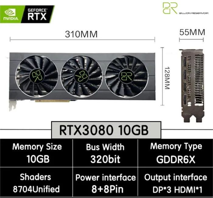 Comprar BR RTX3080 10G (nuevo) gráficos para juegos GDDR6X 320Bit 2*8pin DirectX 12 VIDEO RTX 3080 para PC de escritorio