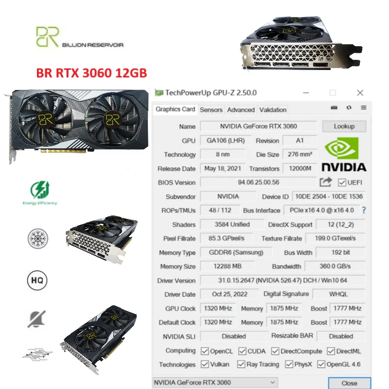 Comprar BR-tarjeta gráfica RTX 3060 DE 12GB, tarjeta LED RGB X-GAME, NVIDIA, GPU, GDDR6, 192 bits, 8 pines, HDMI x 1, PCI-E, 4,0x16, rtx3060, 12G, Placa DE vídeo para juegos