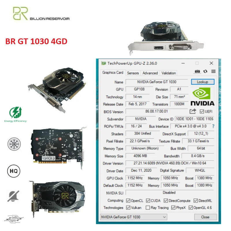 Comprar BR-tarjeta gráfica DE vídeo GeForce GT 1030 MAX 4G, SGDDR4, NVIDIA, 14NM, 4GB, 64 bits, para juegos, nueva