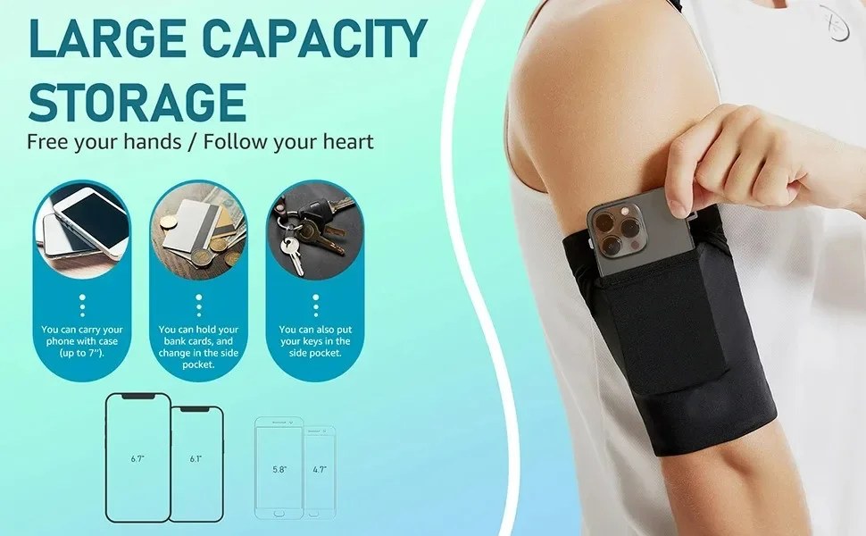 Brazaletes deportivos para correr, bolsa para brazo para teléfono móvil, bolsa para brazalete para teléfono, funda para correr y trotar, soporte para IPhone 15 16 Samsung