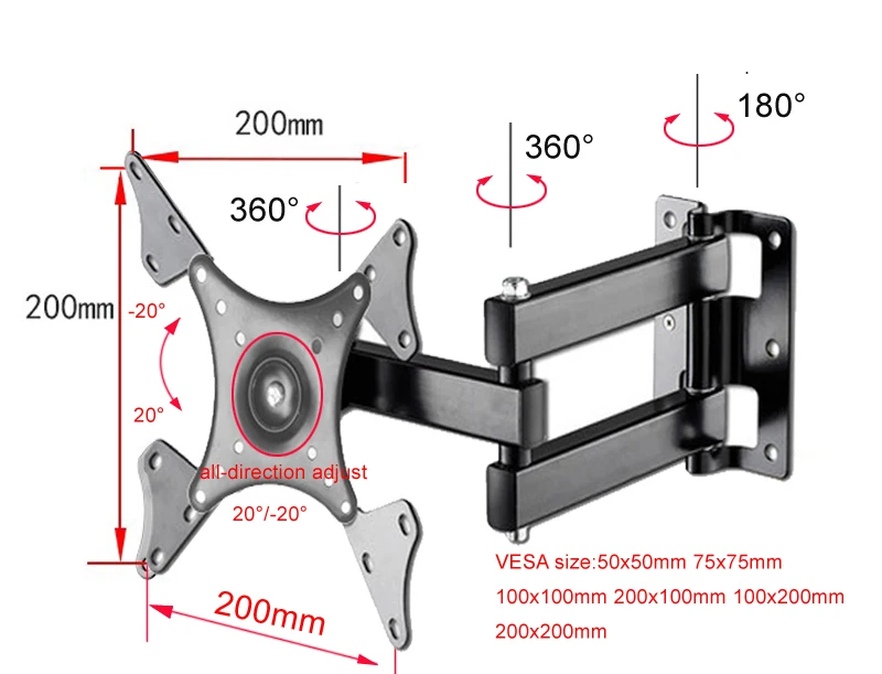 Comprar Brazo extensible de 10-37 pulgadas con movimiento completo para TV, montaje de pared para pantalla LCD-123A, máx. VESA 200x200 mm, carga de 20 kg, soporte de monitor