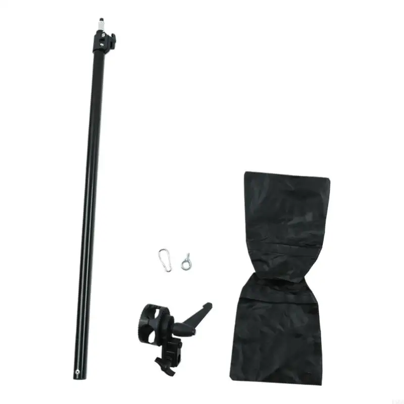 Construido con una aleación de aluminio anodizado negro, este brazo articulado se extiende de 76 a 135 cm e incluye un saco de arena resistente para mayor estabilidad (arena no incluida).