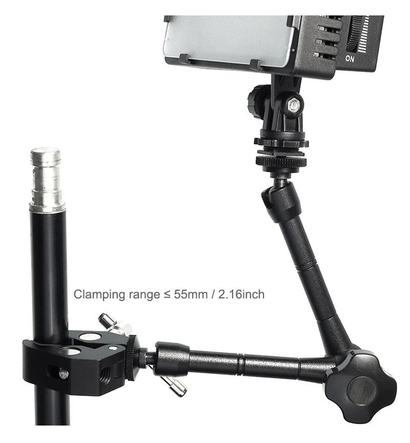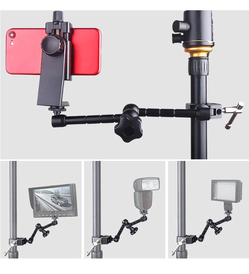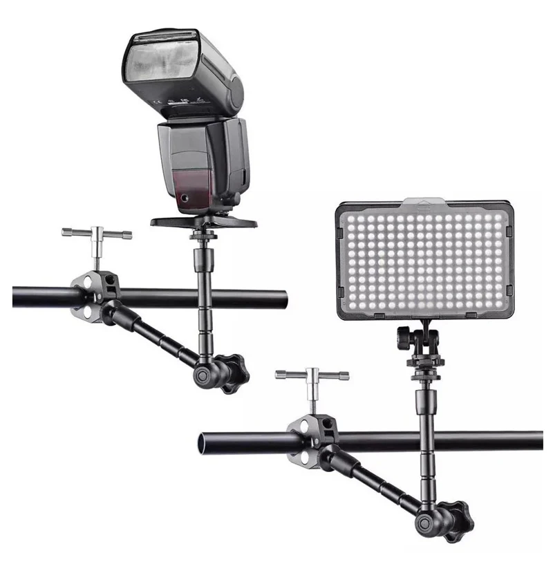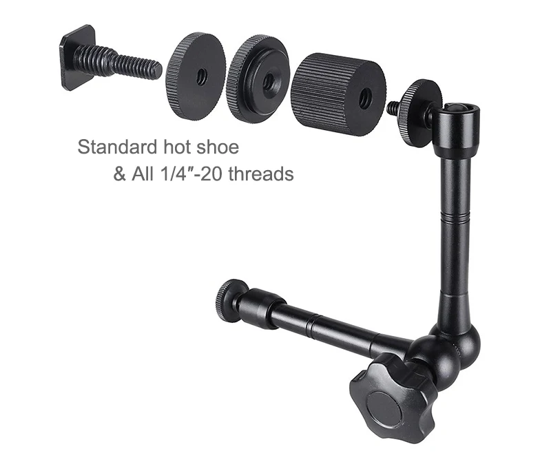 Uso amplio: el brazo mágico articulado de fricción con soportes de Zapata es ideal para equipos de cámara DSLR, monitores LCD, monitores DV, luces LED, luces de Flash, micrófonos, teléfonos inteligentes y más.
