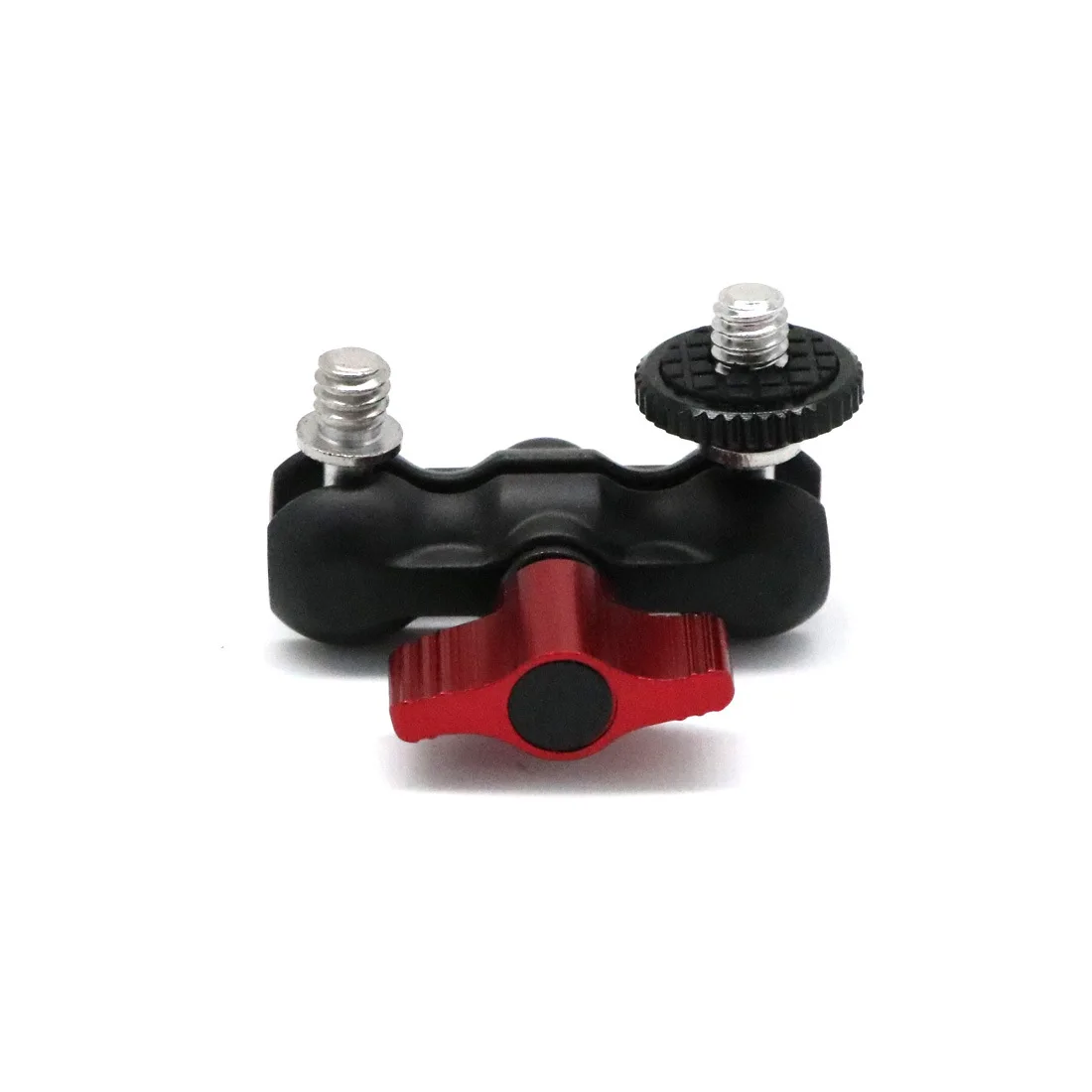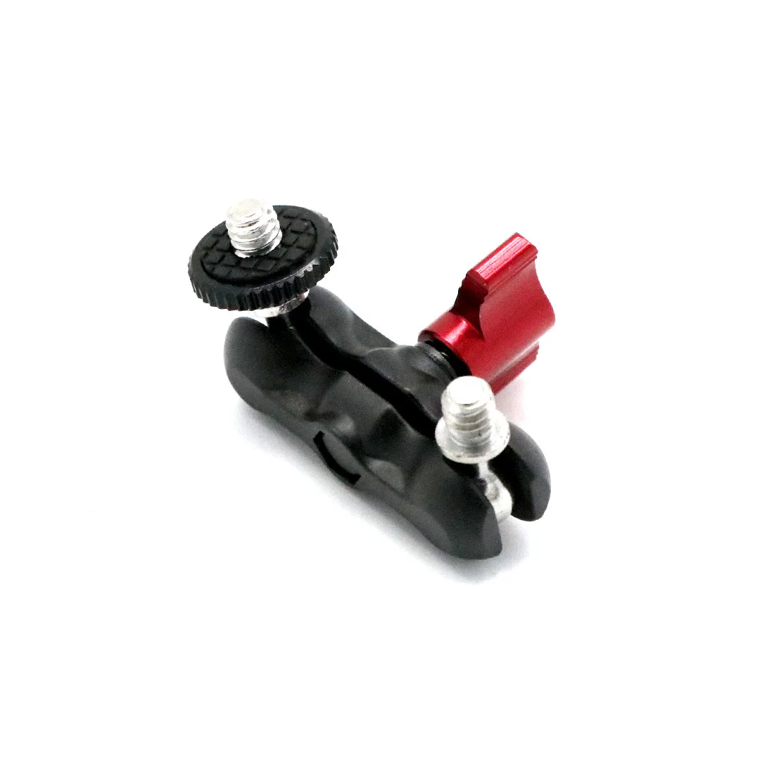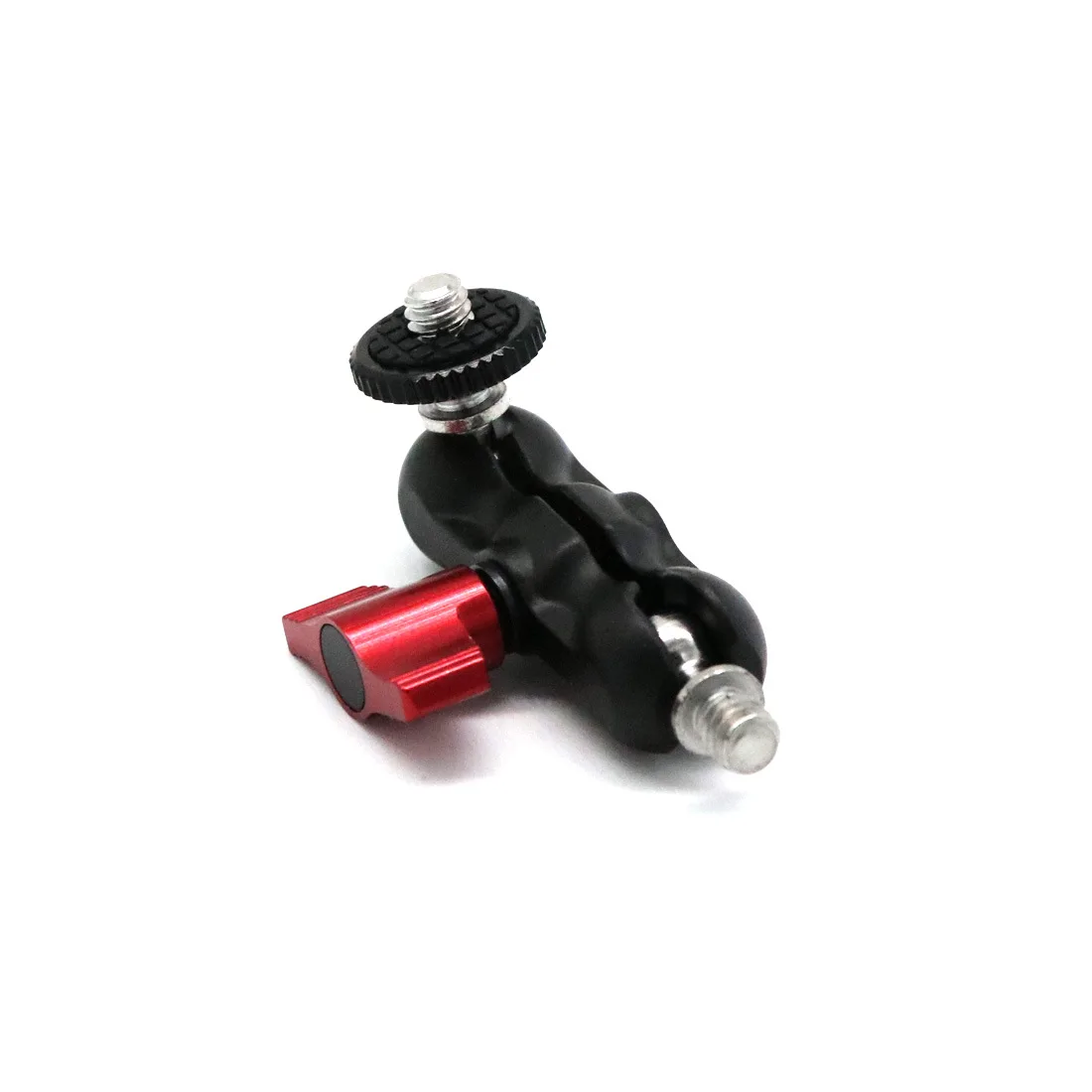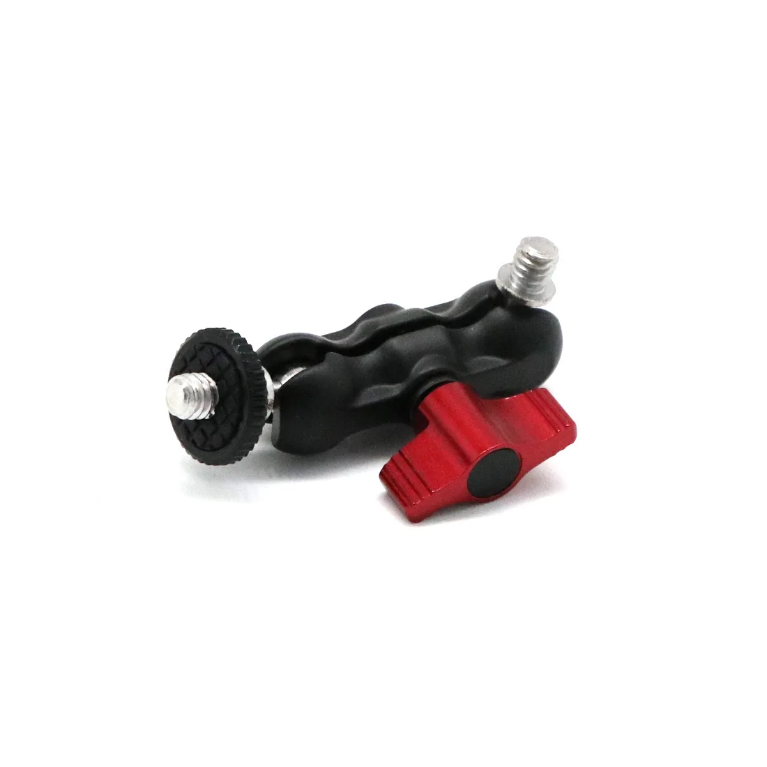 Nuestro adaptador de montaje en brazo para monitor de cámara y luz LED que se puede utilizar para montar monitores y luces led en un soporte de zapata de DSLR o videocámara directamente. Cerca del centro está la perilla de bloqueo que está hecha de aleación de aluminio de material duradero, también puede proporcionar un bloqueo de seguridad.