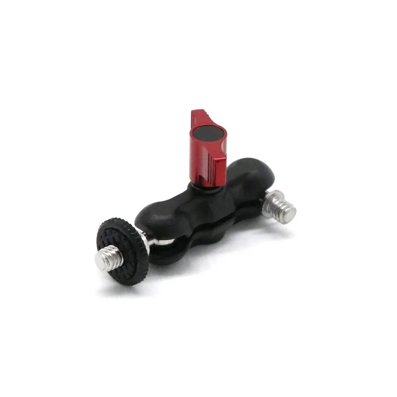 Nuestro adaptador de montaje en brazo para monitor de cámara y luz LED que se puede utilizar para montar monitores y luces led en un soporte de zapata de DSLR o videocámara directamente. Cerca del centro está la perilla de bloqueo que está hecha de aleación de aluminio de material duradero, también puede proporcionar un bloqueo de seguridad.