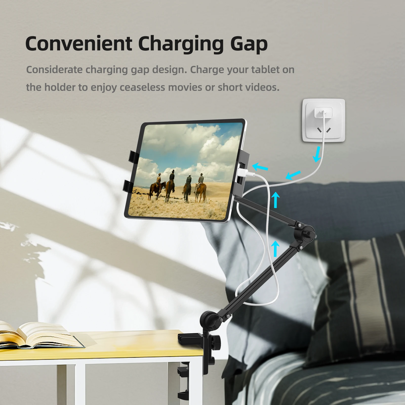 Las varillas de soporte son lo suficientemente largas para adaptarse a usted en cualquier lugar de la cama y proporcionan un ángulo de visión libre incluso cuando está acostado.