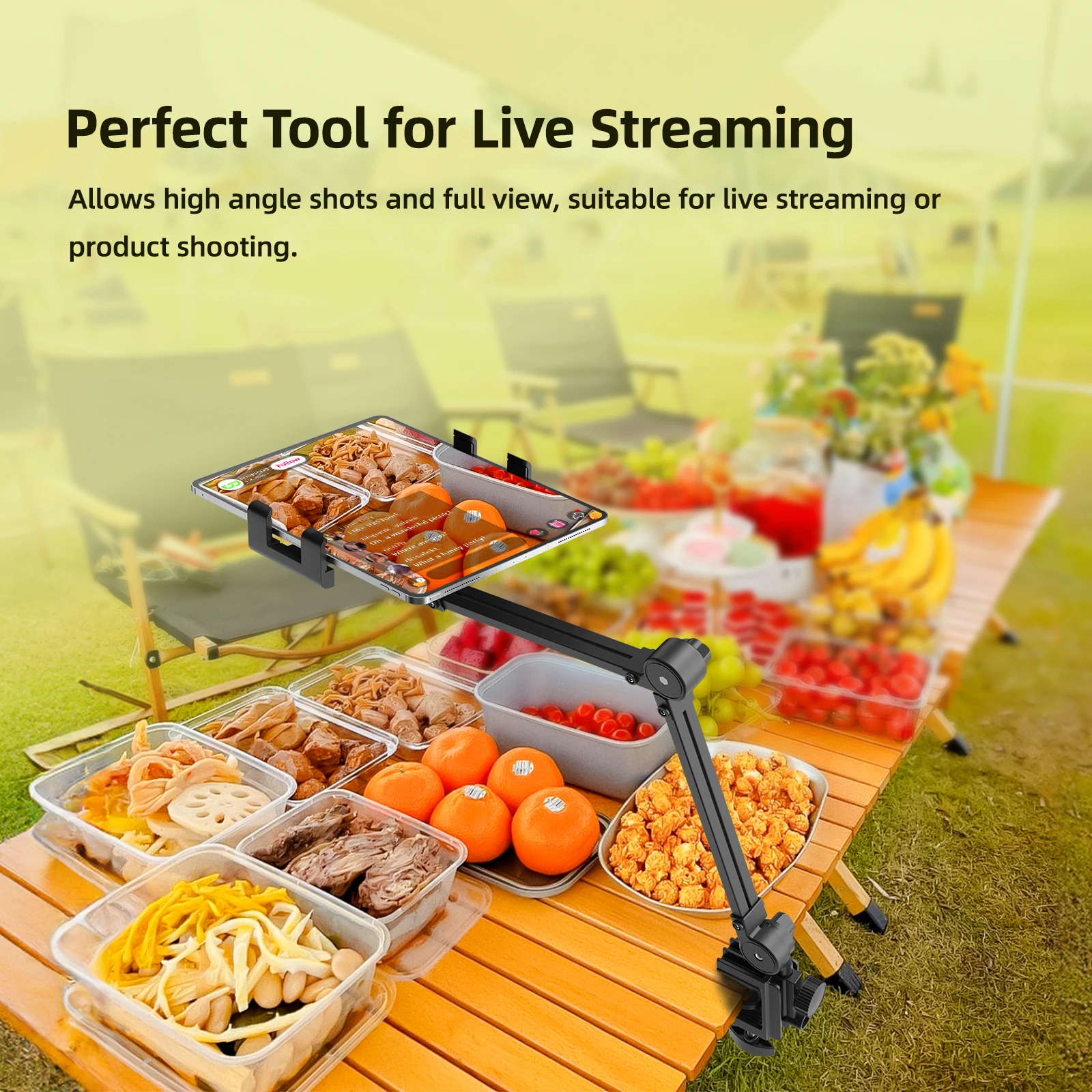 Permite tomas de alto ángulo y vista completa, adecuado para transmisión en vivo o grabación de productos.