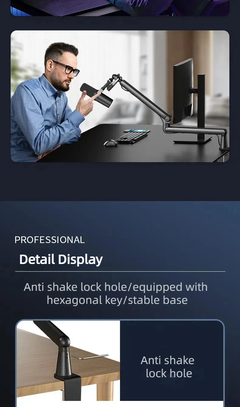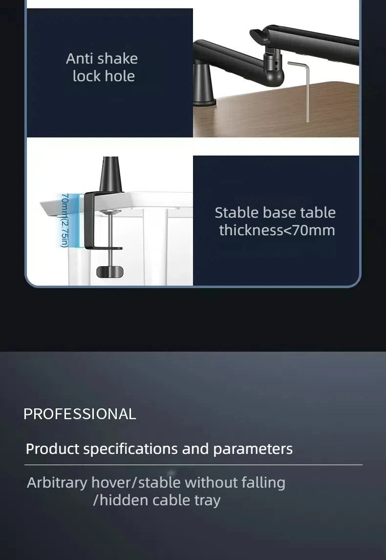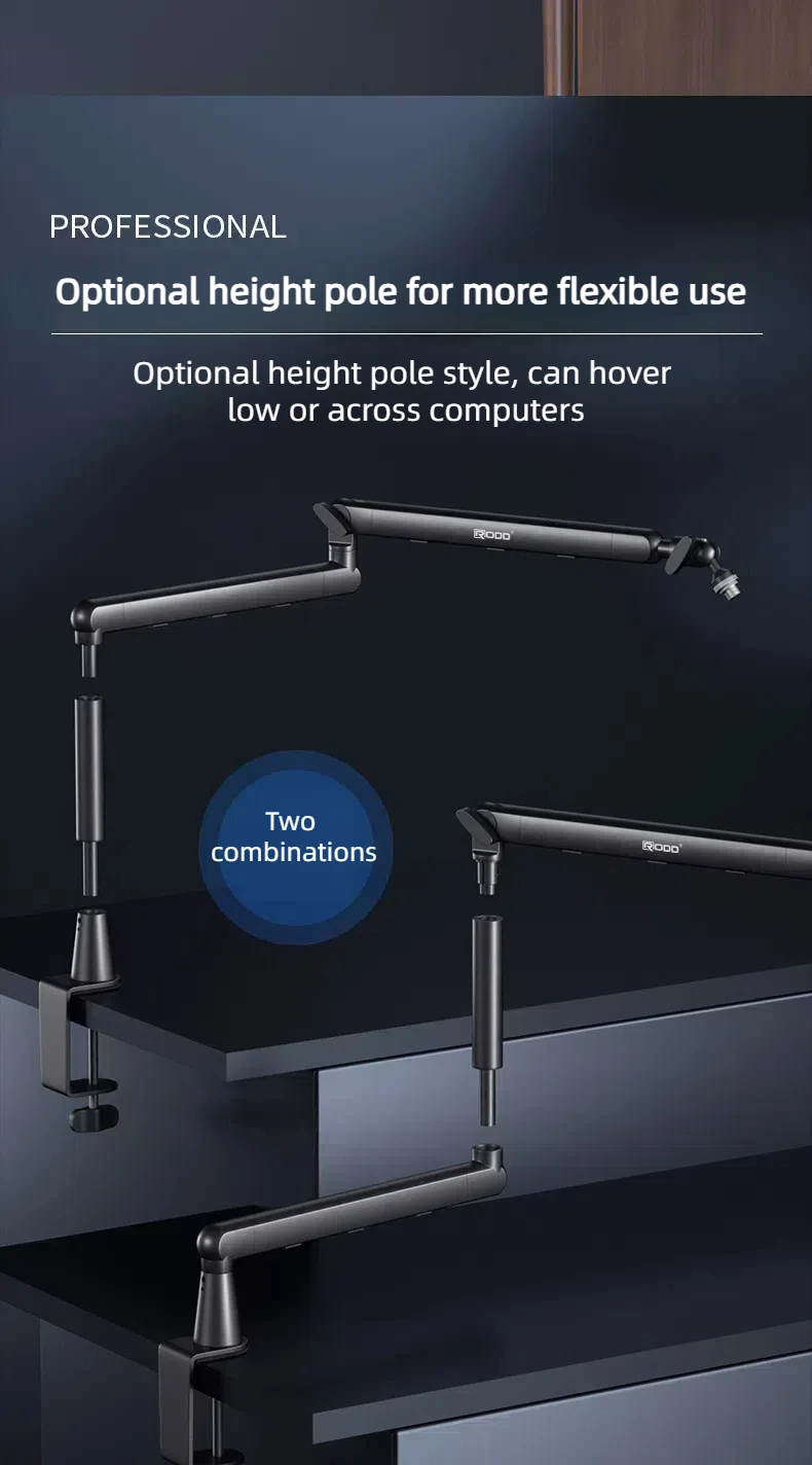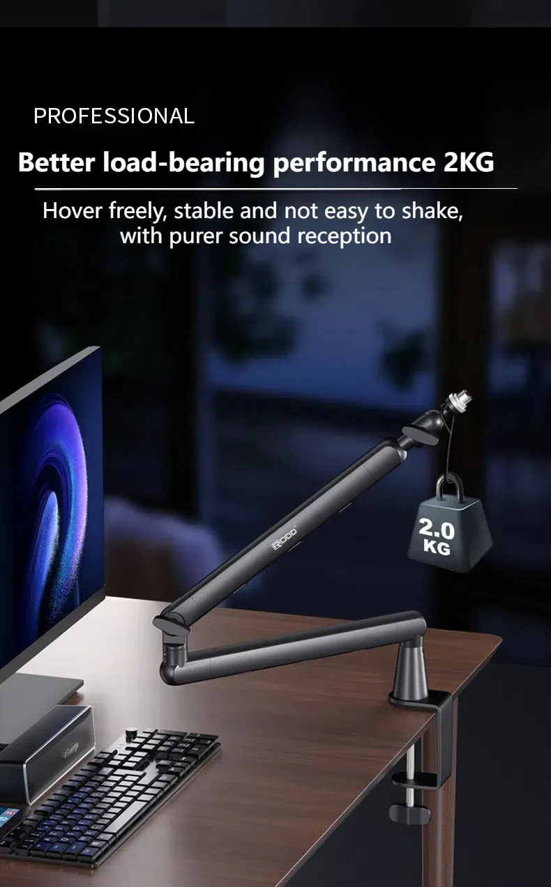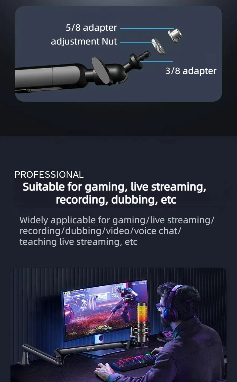 Brazo de micrófono de perfil bajo, 360 ° Soporte de micrófono con brazo de soporte para micrófono para Fifine AM8 K669B Blue Yeti HyperX, con clip de micrófono, adaptador de 3/8 "a 5/8"