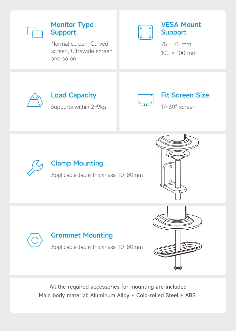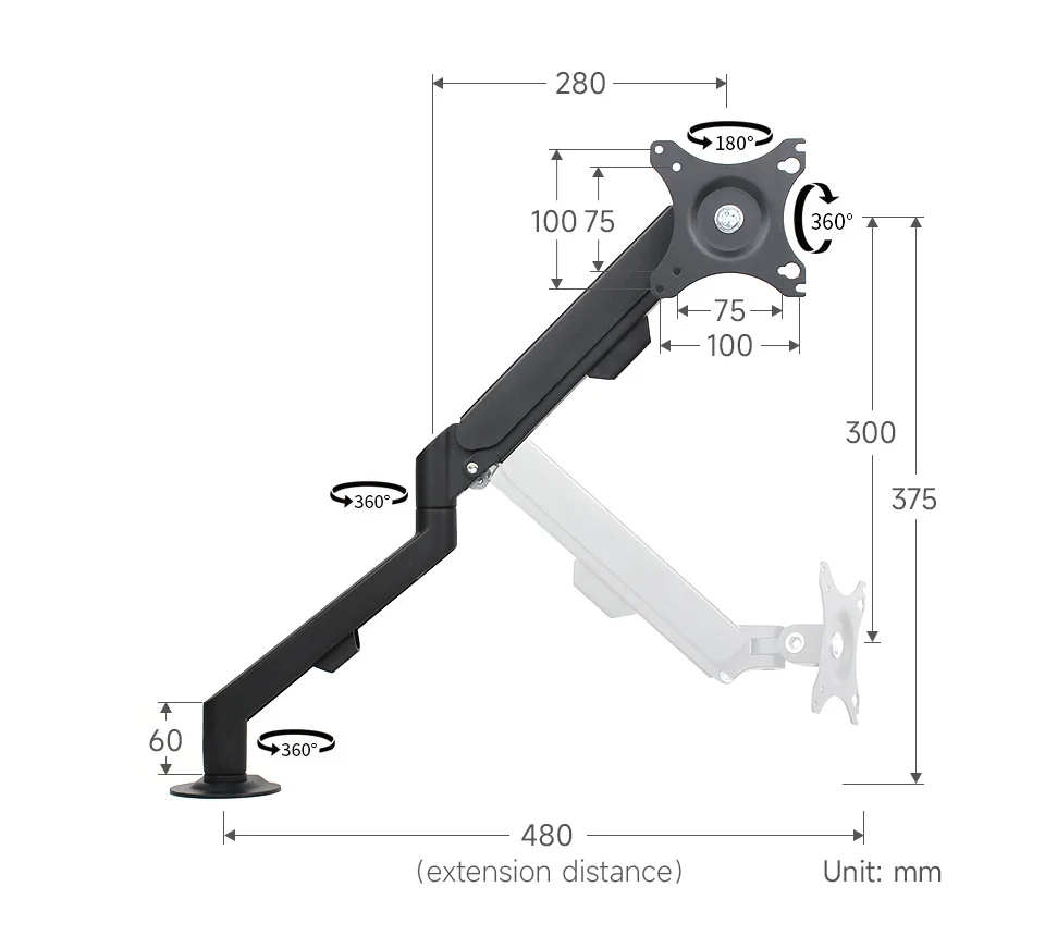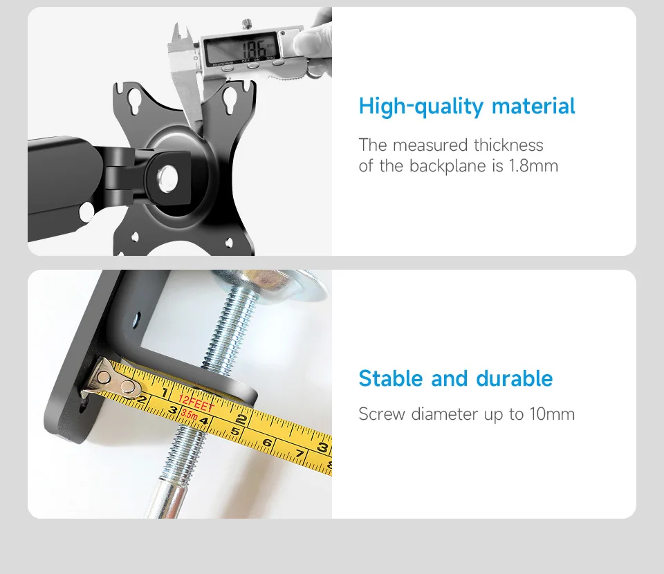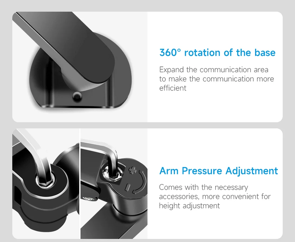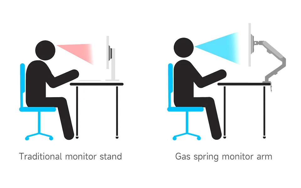 El soporte de exhibición tradicional no puede adaptarse mejor a la postura sentada debido a sus limitaciones, lo que hará que nuestra columna cervical y nuestros ojos sientan molestias. Y este brazo del monitor puede desbloquear la postura fija, le permite cambiar su postura de pie o sentado y ajustar la distancia de visión, el ángulo y la altura del monitor a su voluntad. La experiencia de oficina es muy diferente.