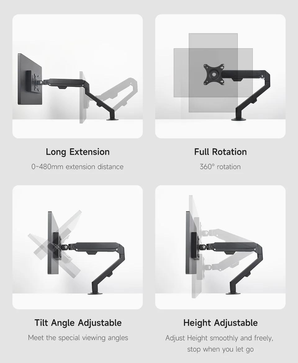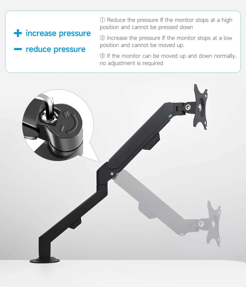 Comprar Brazo de Monitor de resorte de Gas para Monitor de pantalla de 17 ~ 30 pulgadas, ajuste de altura libre, admite rotación multiángulo y expansión