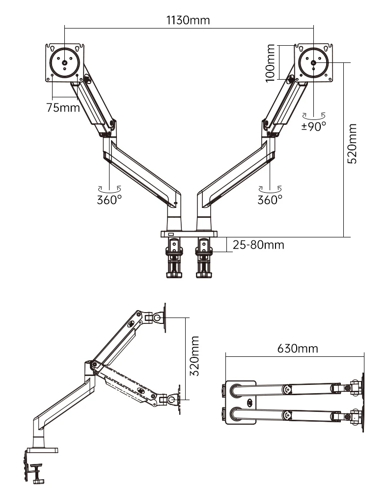 Comprar Brazo de resorte de Gas de aleación de aluminio NB G32, montaje de Monitor LED LCD Dual, movimiento completo, soporte de Monitor, carga de 3-15 kg cada uno, 22 "-32"