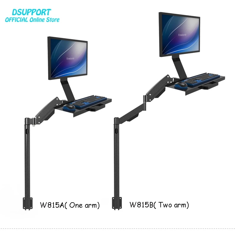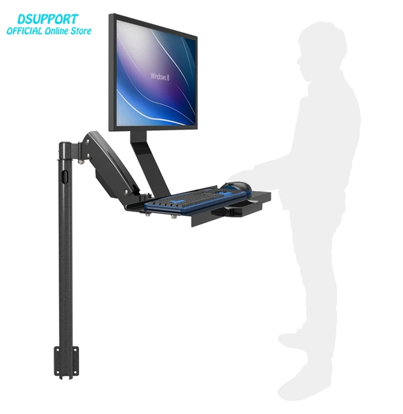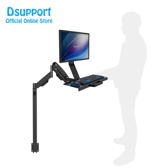 Comprar Brazo de resorte de Gas de movimiento completo, soporte de Monitor de teclado personalizado, soporte de suelo, montaje lateral de pared, brazo de montaje de Monitor de trabajo