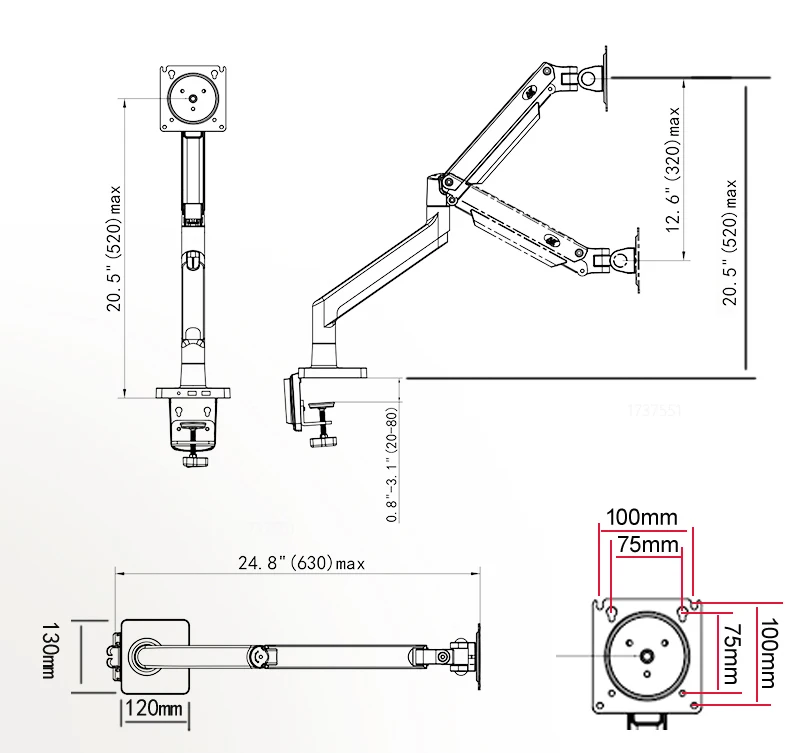 Extensión vertical máxima 24,8 ” (630mm)