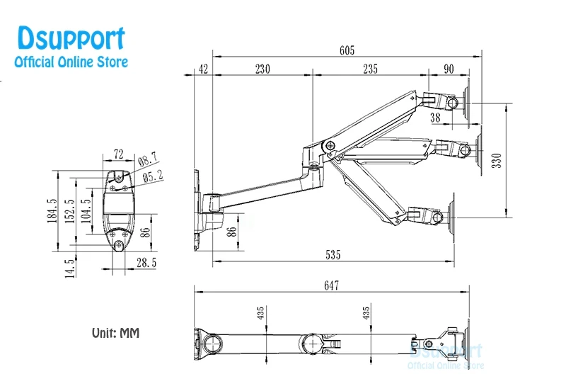 Comprar Brazo de resorte mecánico de aleación de aluminio para montaje en pared, soporte de Monitor de movimiento completo, Ultra largo