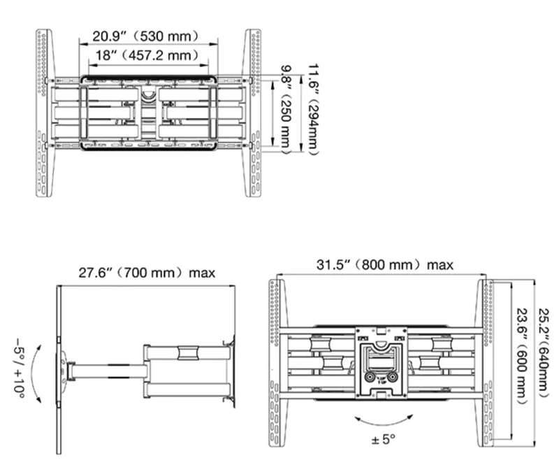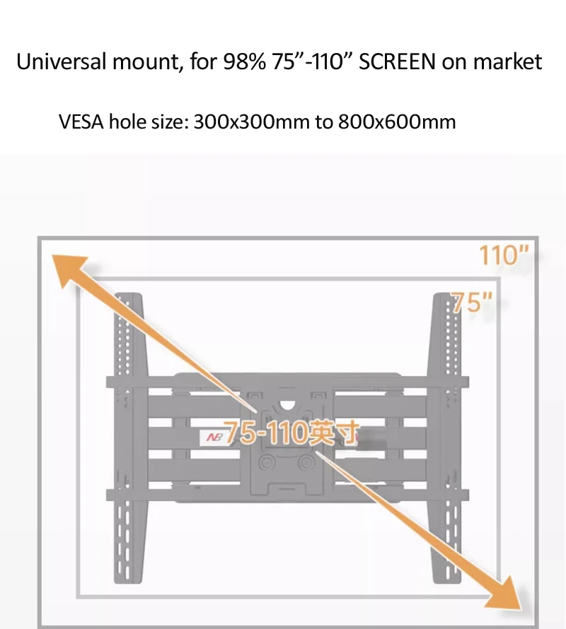 Cumplimiento con VESA: Universal, adecuado para todos los tamaños de VESA entre 300x300mm a 800x600mm