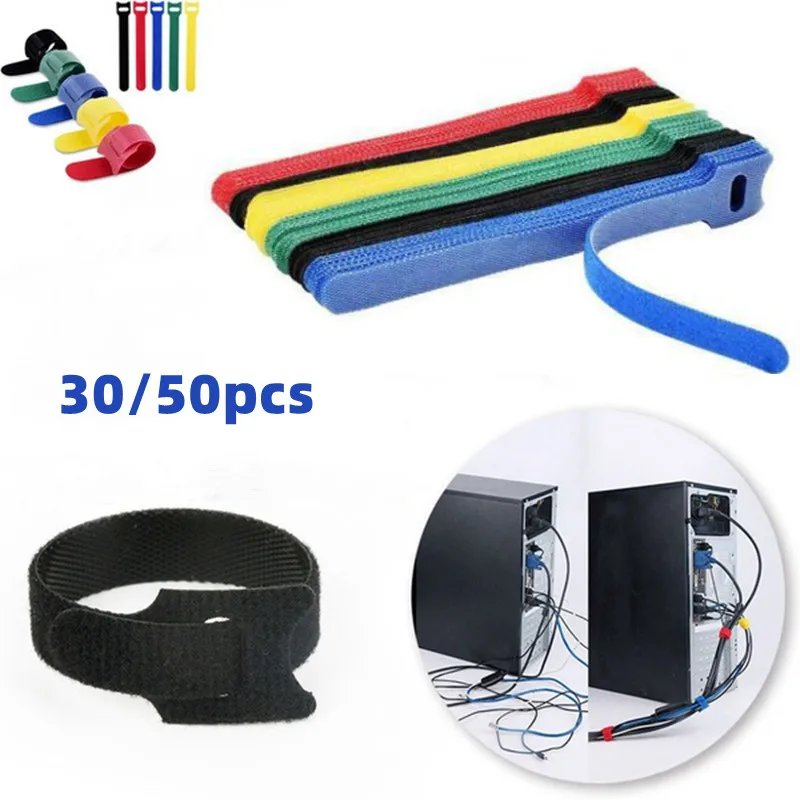 Bridas para cables reutilizables, 50 Uds., correas organizadoras de cables para PC, TV, electrónica, gestión de cables, sujeción, accesorios para el hogar y la Oficina