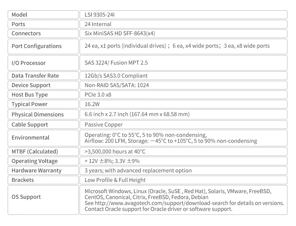 Comprar Broadcom HBA 9305-24i SAS3224 05-25699-00 12 Gb/s SAS/SATA PCIe 3,0x8 interno de 24 puertos 6xSFF8643 adaptador de Bus Host sin RAID
