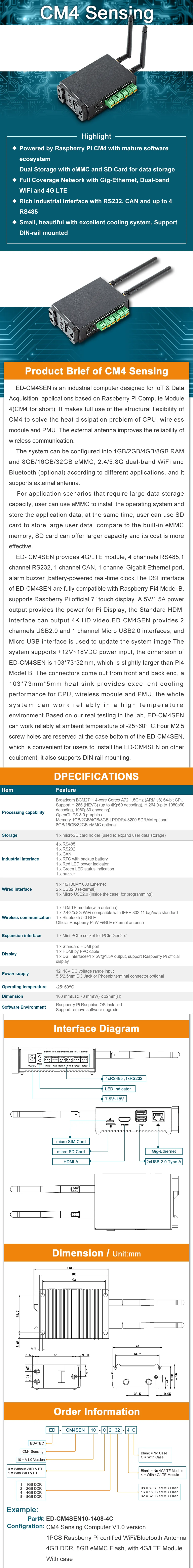 Broadcom-sensor EDATEC CM4 BCM2711, PC Industrial para lote y adquisición de datos, aplicación basada en Raspberry Pi CM4, hasta 8GB de RAM
